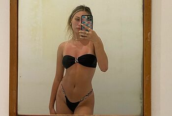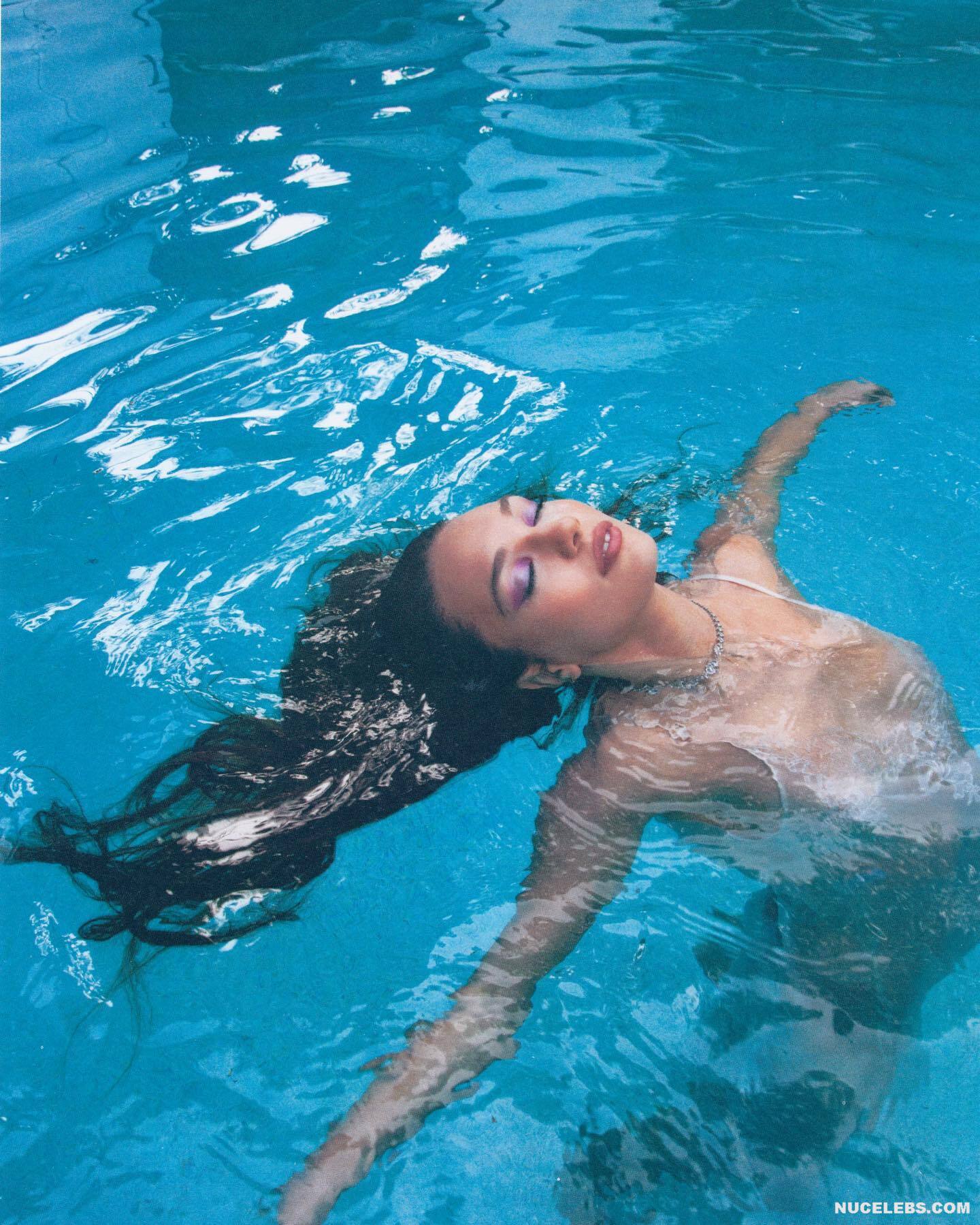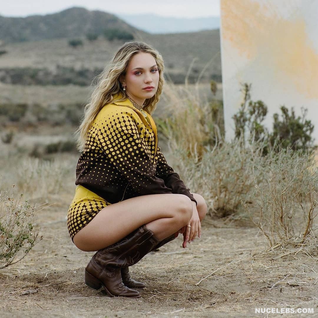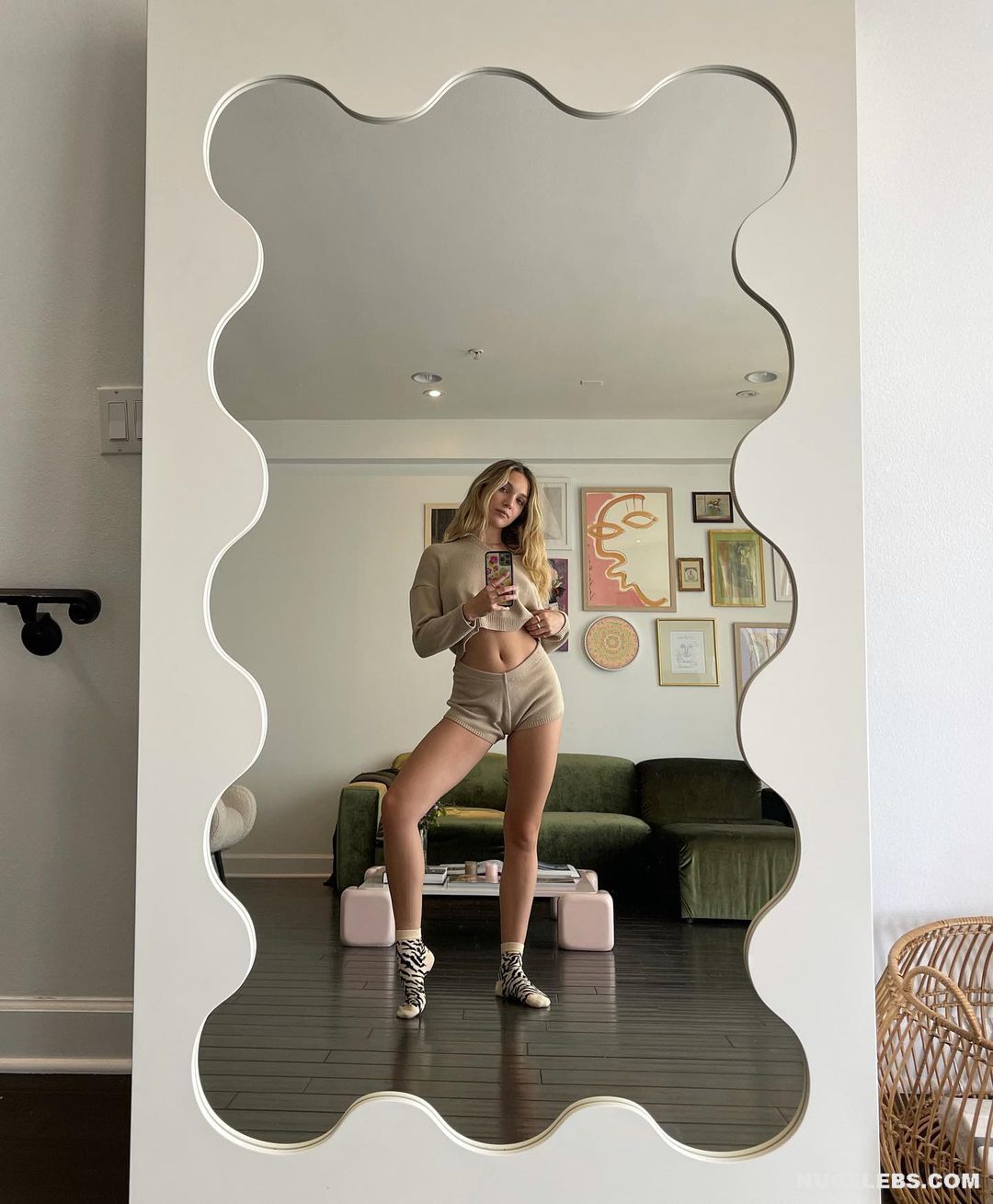 Maddie Ziegler will tease your imagination with her bikini pics. For example, here is a photo in which this beauty poses in a petite white bikini with a floral print and a red and white cap. At the same time, the bottom of Maddie Ziegler’s nude boobs peeked out seductively from under her bra. You can also check out her peach booty in a wet black thong as she posed on the edge of the pool.