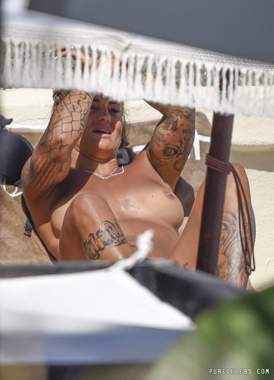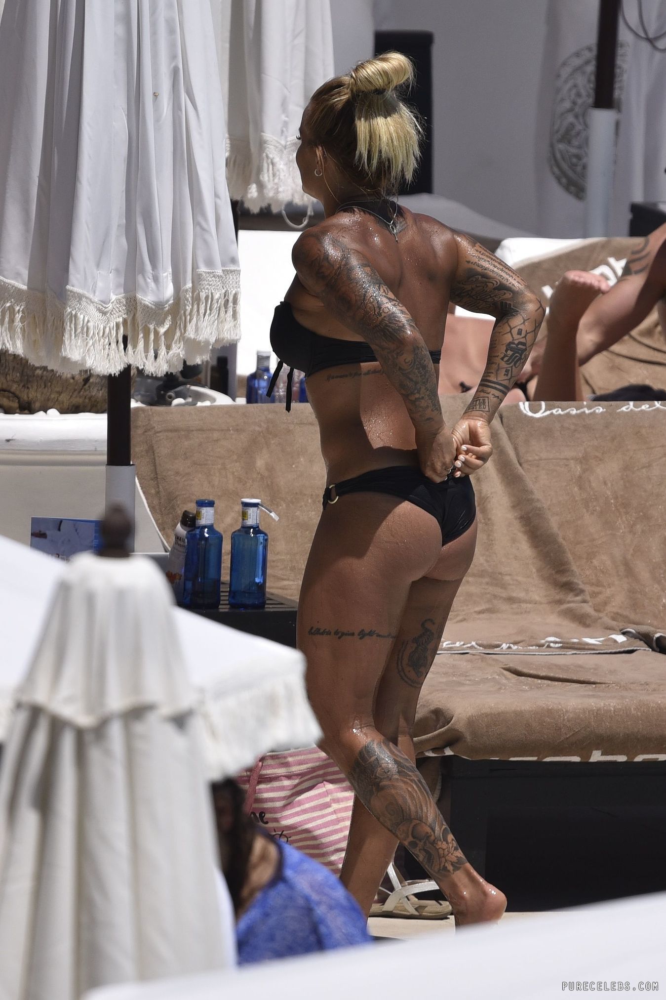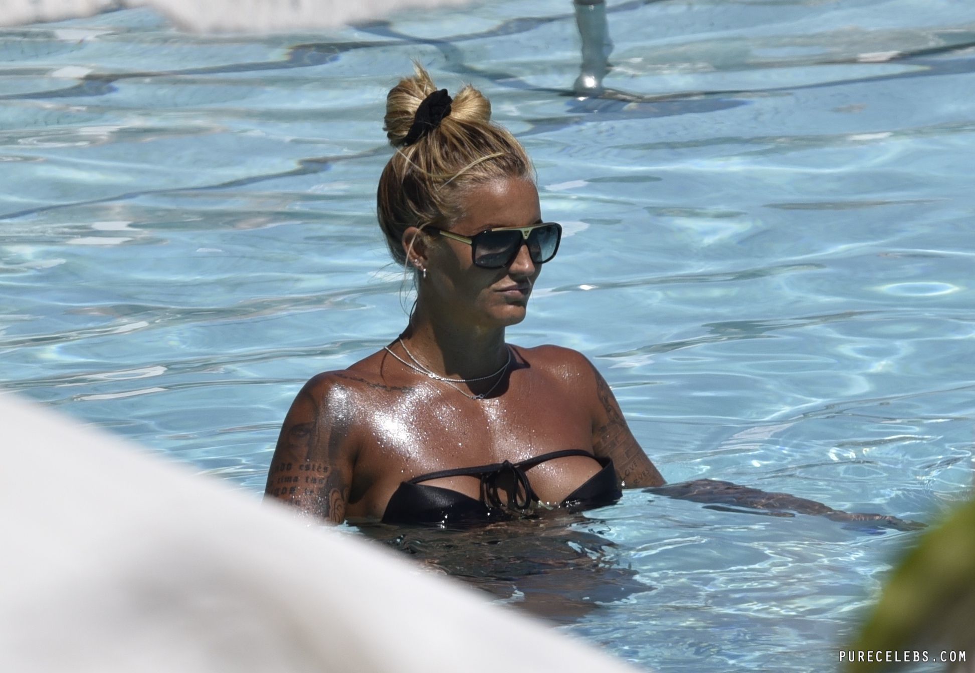 Paparazzi do not leave alone Madeleine Vall Beijner, one of the best Thaiboxer in the world. So they photographed this celebrity during her vacation. First, the girl bathed in the pool, dressed in a small black bikini. But after she emerged from the water, the star decided to take off her bra. So now we can admire Madeleine Vall Beijner’s nude boobs with brown nipples when she is sunbathing.