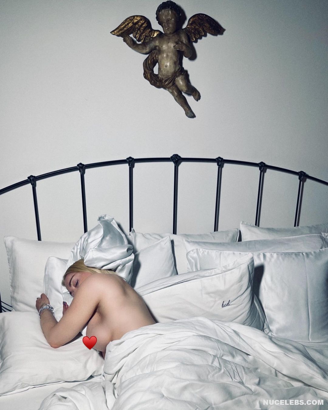 It’s no secret that Madonna loves to shoot nude, and she already has a fairly large collection of such photos and videos. So let’s check out one of her latest nude shots. This hot singer seemed to enjoy twisting her sweet booty in black thongs and fishnet tights in front of the camera. And Madonna’s nude boobs tied with black leather straps were on display at all! By the way, a little later, this celebrity was lying in bed topless at all, not even bothering to cover up her naughty bits.