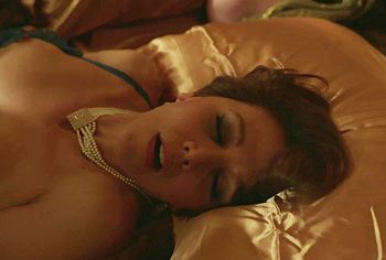 The stunning Maggie Gyllenhaal starred in nude and sex scenes on The Deuce (2019). This celebrity took part in a real staged porn video. The actress had a threesome sex with two men. One man fucked Maggie Gyllenhaal in her nude pussy and her juicy boobs with brown nipples bounced with every cock thrust. And the second man jerked off his cock right next to her mouth when she moaned loudly.