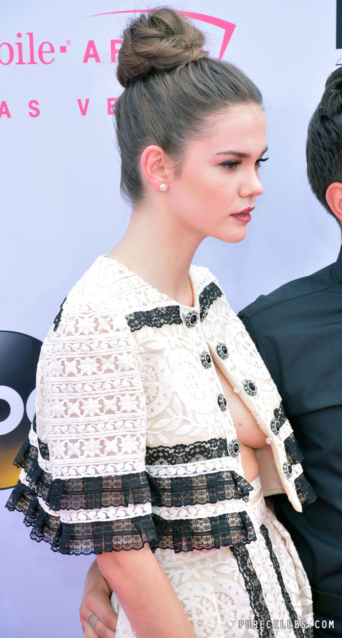 Judging by the photo of the nude breasts of Maia Mitchell, this beauty is very hot! Paparazzi photographed a girl during one of the events in a very provocative outfit. The beauty was dressed in a light suit with an ornament. At the same time, her short jacket was unbuttoned and the sides of the celebrity’s naked boobs peeped out. Another time, paparazzi caught this actress in a short white dress when she got out of the car. Oh, it was a wonderful upskirt moment when she flashed her white panties.