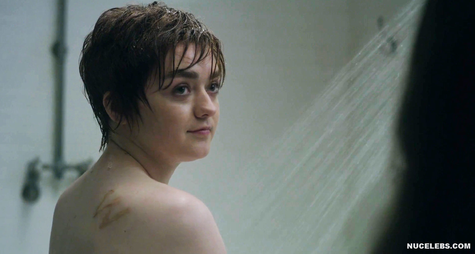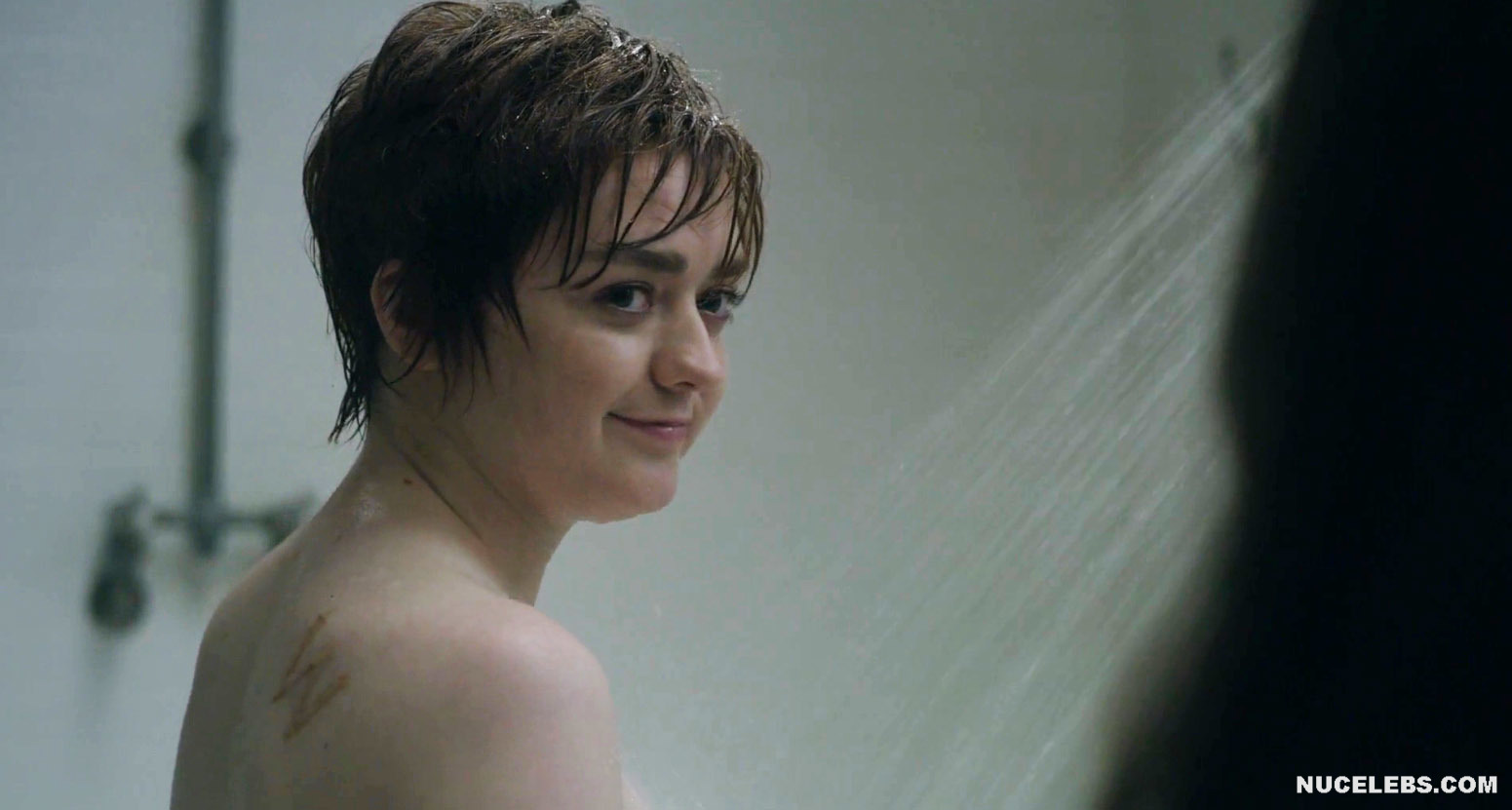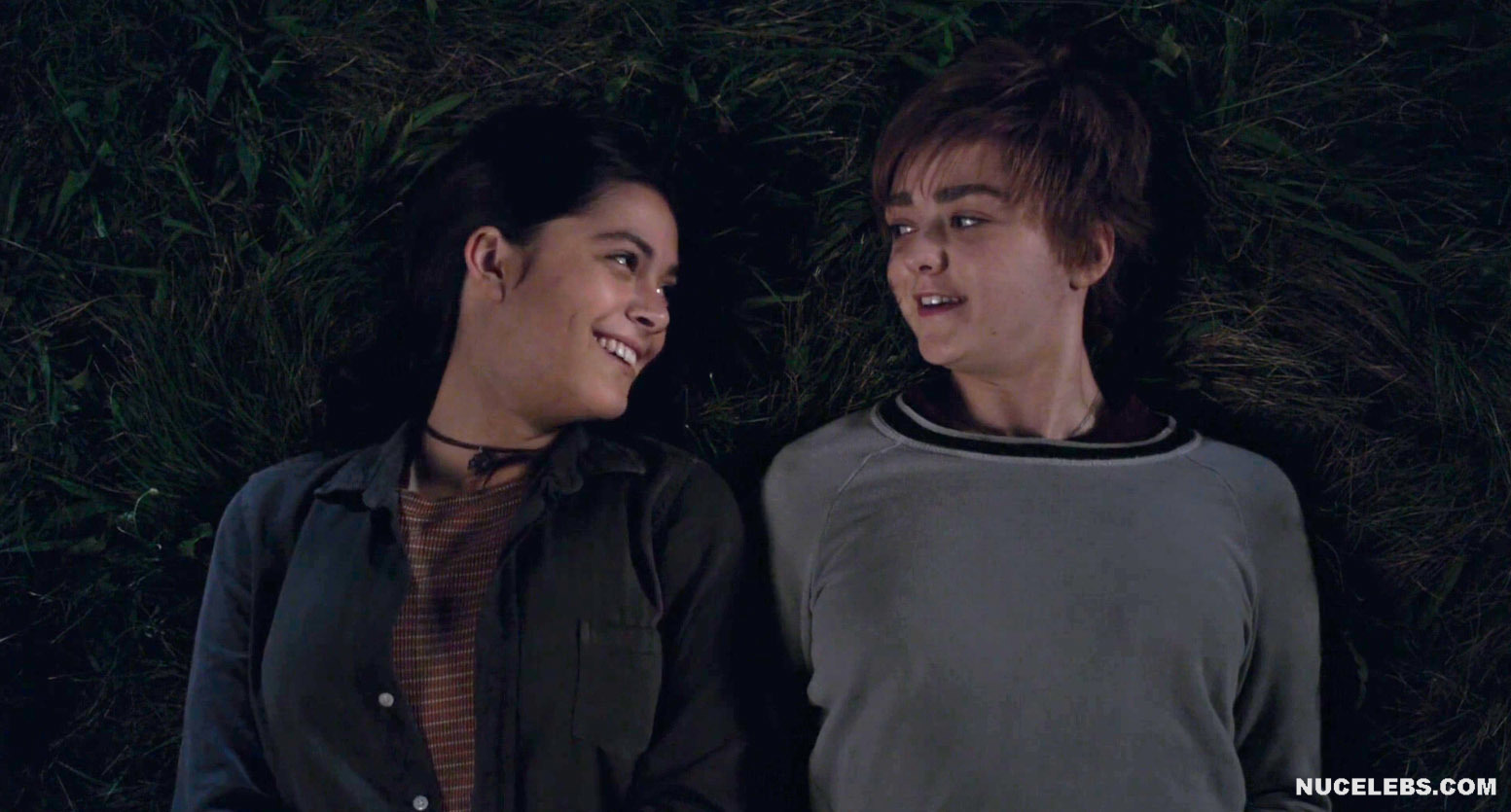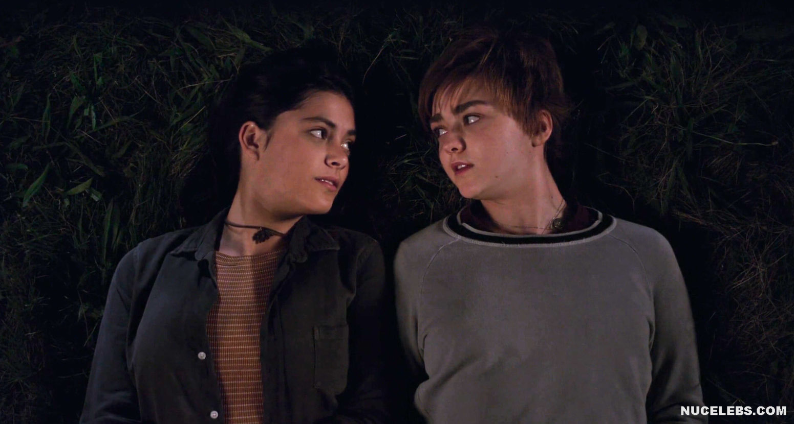 Maisie Williams and Blu Hunt appeared nude in some movie scenes. Well, it looks like these naked sweet beauties decided to take a shower together for a reason. Indeed, in another scene, Maisie Williams and Blu Hunt, although they will not be nude, will still find something to attract your attention. For example, they will spark your imagination with a hot lesbian kiss as they lie on the grass and gaze at the stars.