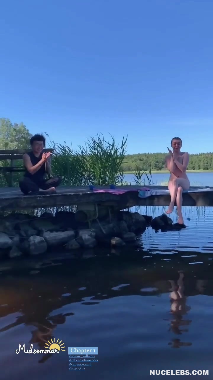 It’s amazing how Maisie Williams combines innocence and sexiness. Check out these pictures of this hot babe relaxing with her girlfriends by the river. And this 27-year-old actress decided to do more than just flaunt her figure in a tiny bikini. Maisie Williams was sitting absolutely nude by the river, a little shy and trying to cover herself up. But when she entered the water, she felt braver. So, Maisie Williams nude buttocks were on display for your viewing pleasure!