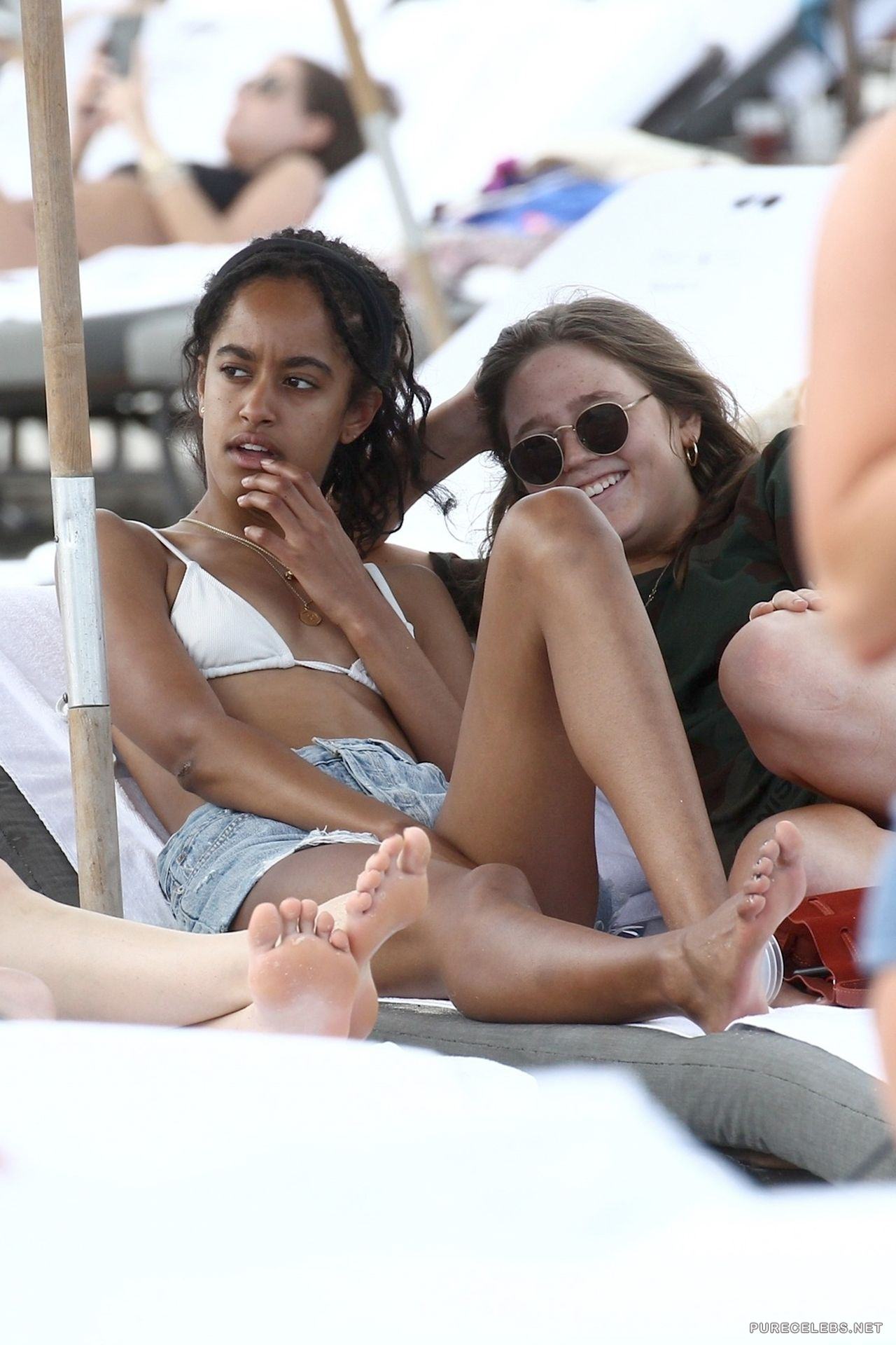 If you want to see Malia Obama in a swimsuit for some reason, we have you covered. Check her out next to her friends in her one piece swimwear as she is adjusting it. Her ass seems to be bitting into her crotch and she seems to be really bothered by the sun in this series of pictures so she gets under some shade to cool off.