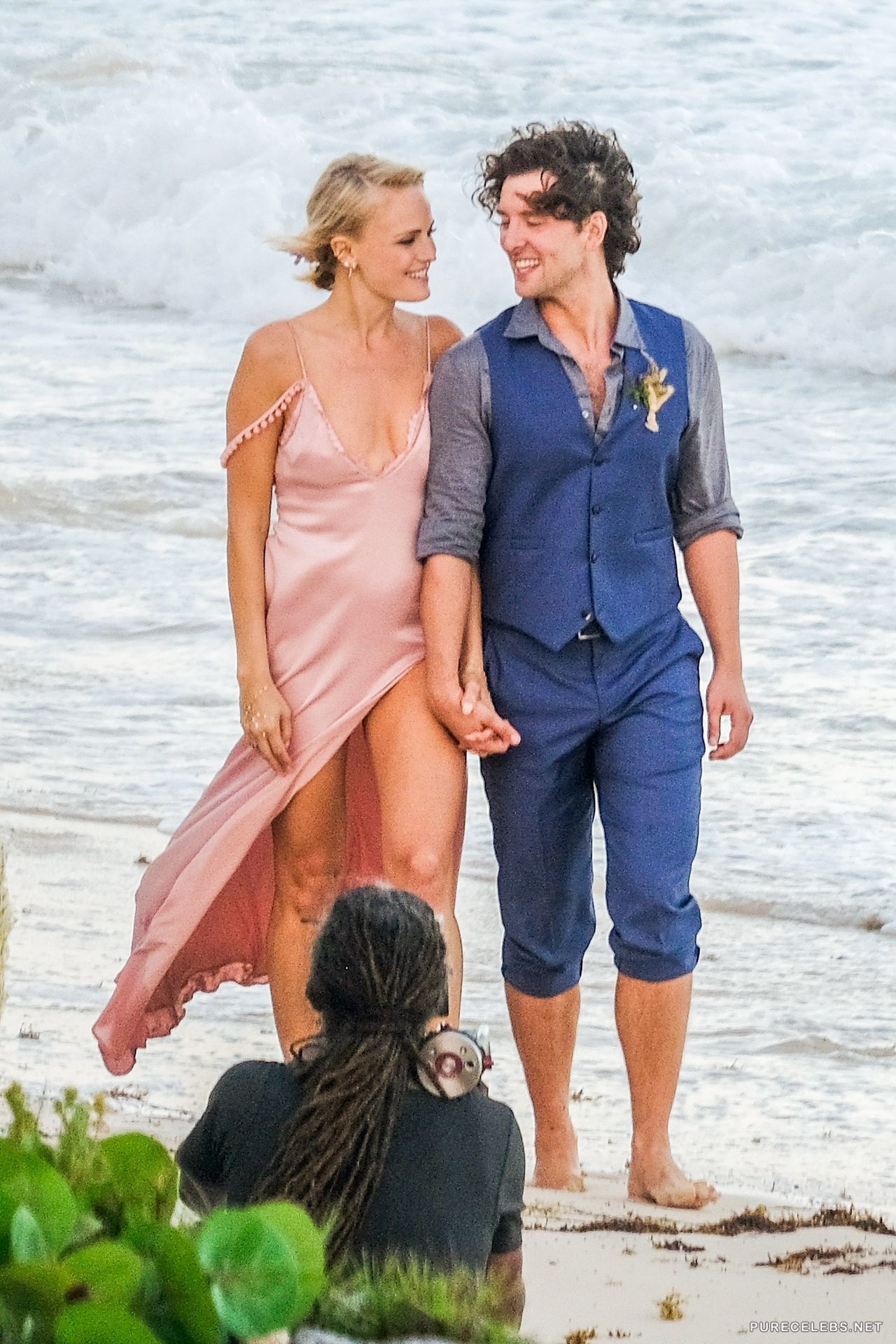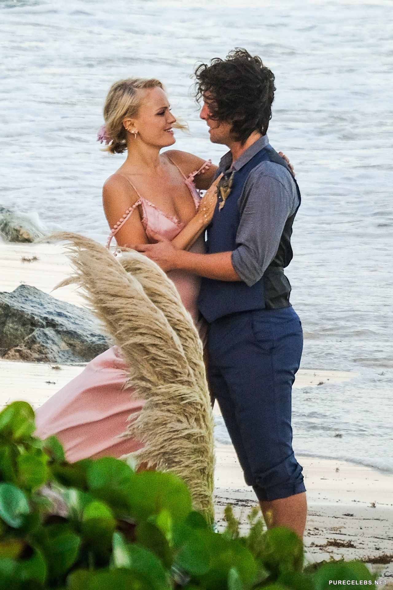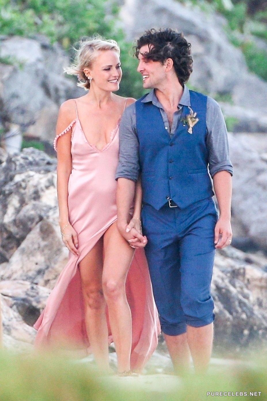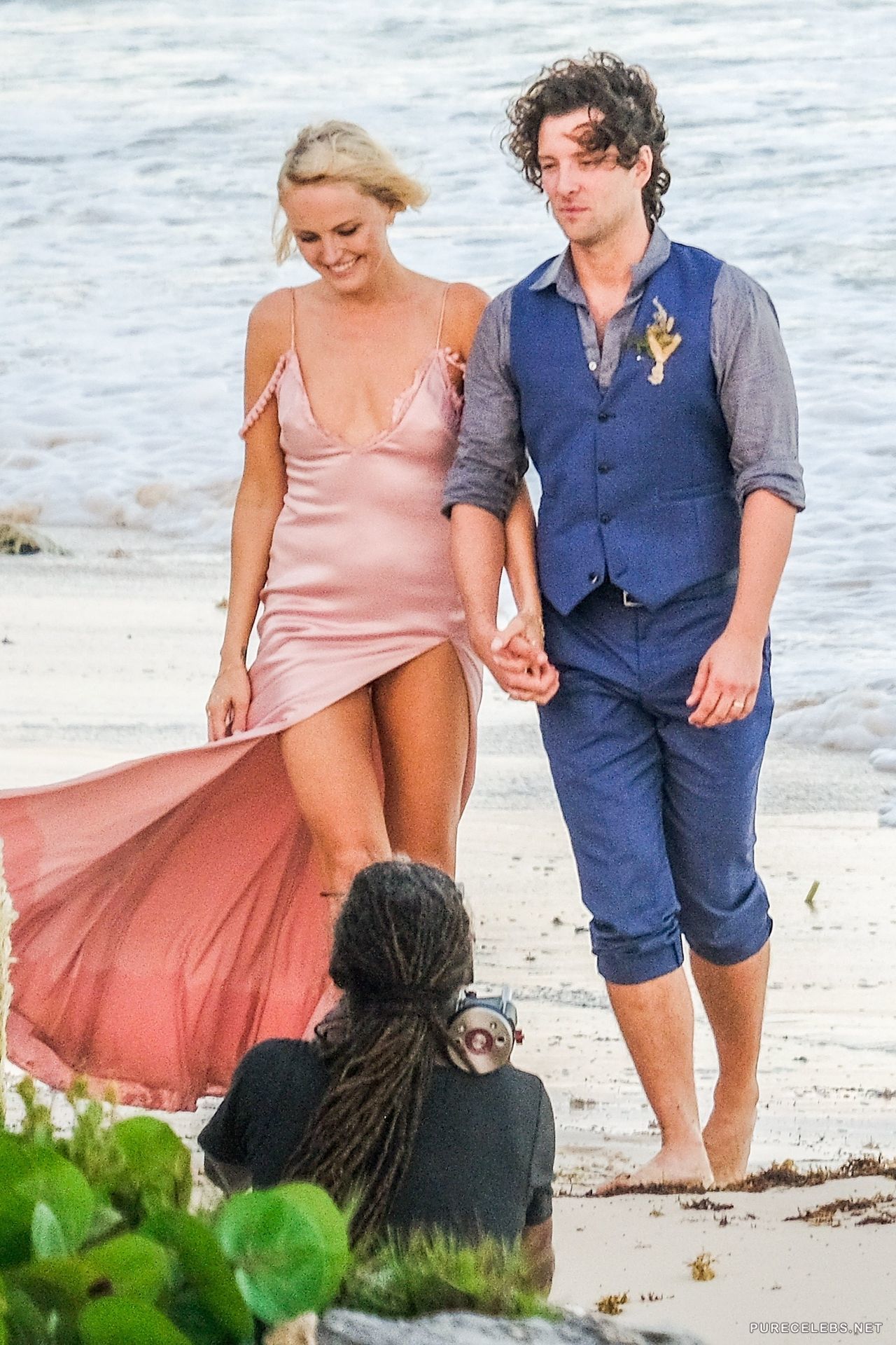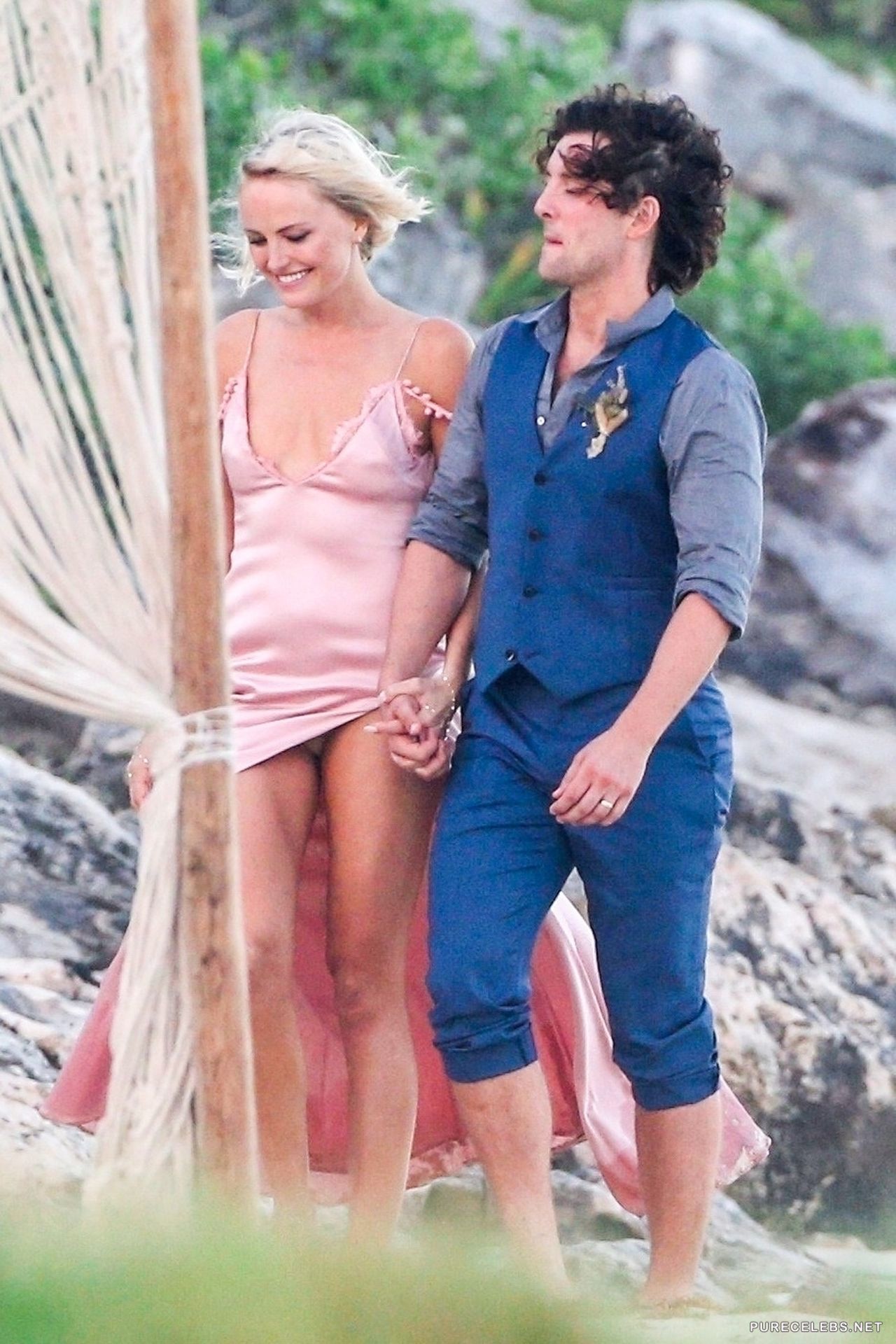 Sweet Swedish- Canadian actress and singer, Malin Akerman most probably knew that upskirt moments happen even in a long dress, still she wanted a beach wedding and got one. The couple looked amazing, very happy, with huge smiles on their faces and that special glow that people in love have radiating around them. We send best wishes and hope for more upskirts or some nipslip, if possible, in another occasion.