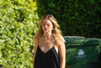 Australian actress Margot Robbie does not often delight her fans with nude photos. Paparazzi are doing everything to catch this nude celebrity. For example, they managed to photograph this star braless in a short black dress. The top of the dress was so small that it barely covered Margot Robbie’s nude tits, only her nipples were covered with pieces of fabric. And just the slightest breath of wind was enough for the dress to rise up, showing us the ass and pussy of this actress.