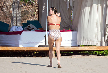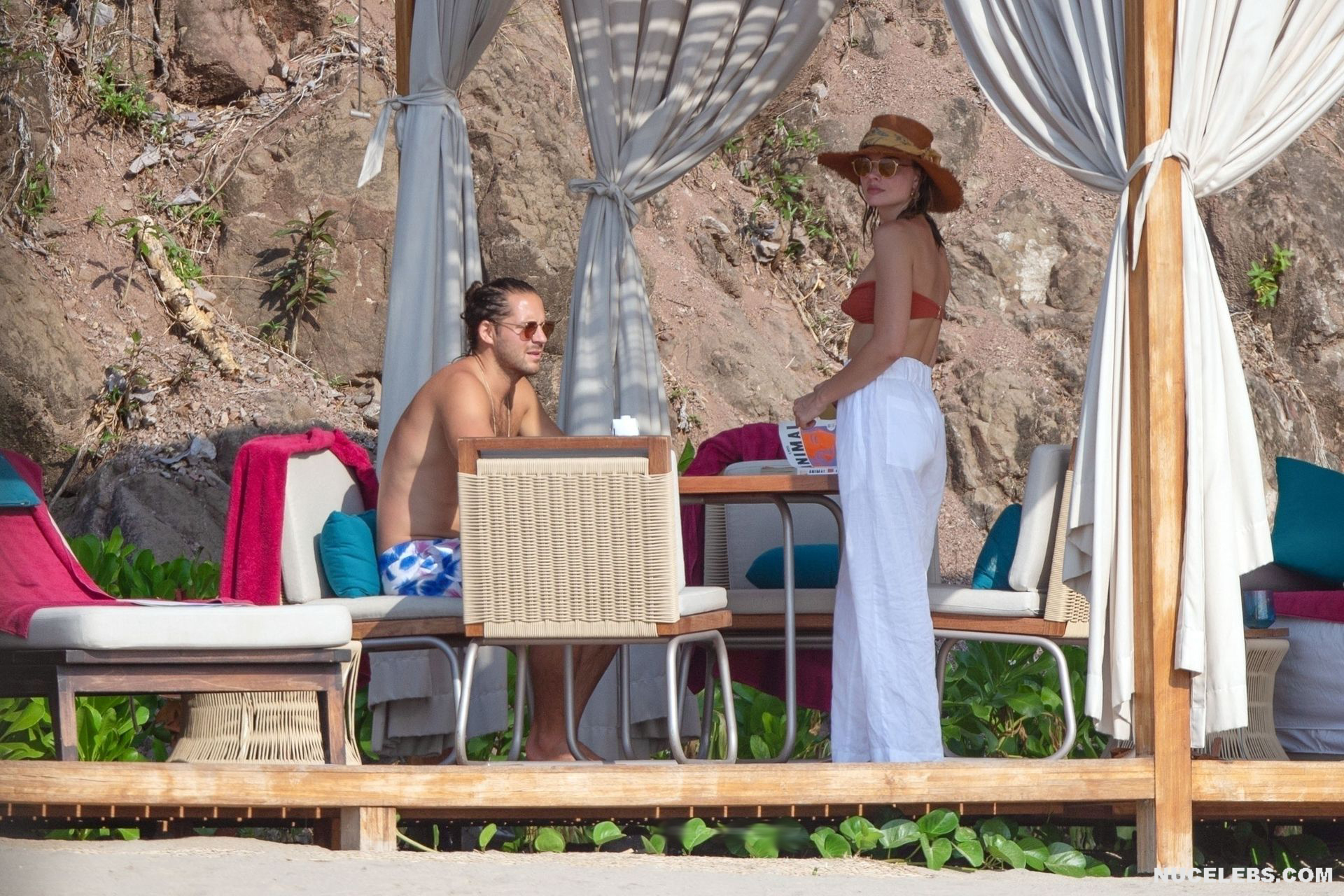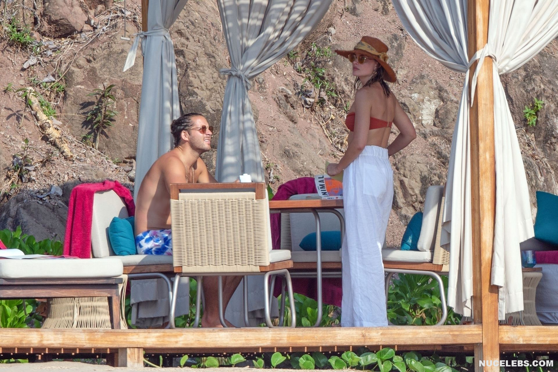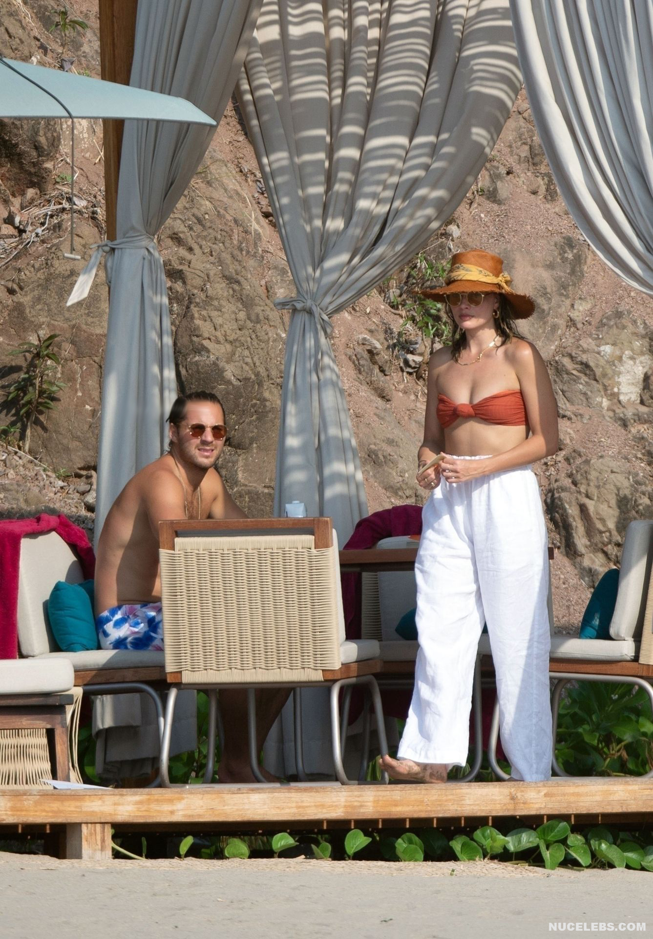 The paparazzi managed to catch Margot Robbie during her vacation with Tom Ackerly. The girl undoubtedly wanted to impress him with her appearance. So, this Australian actress was wearing white floral panties that fit her butt perfectly. But her orange bra almost did not hide Margot Robbie’s nude breasts. It would be nice if the bra slid off her … After all, then everyone could enjoy with Margot Robbie’s nude sweet boobs!