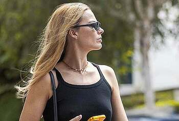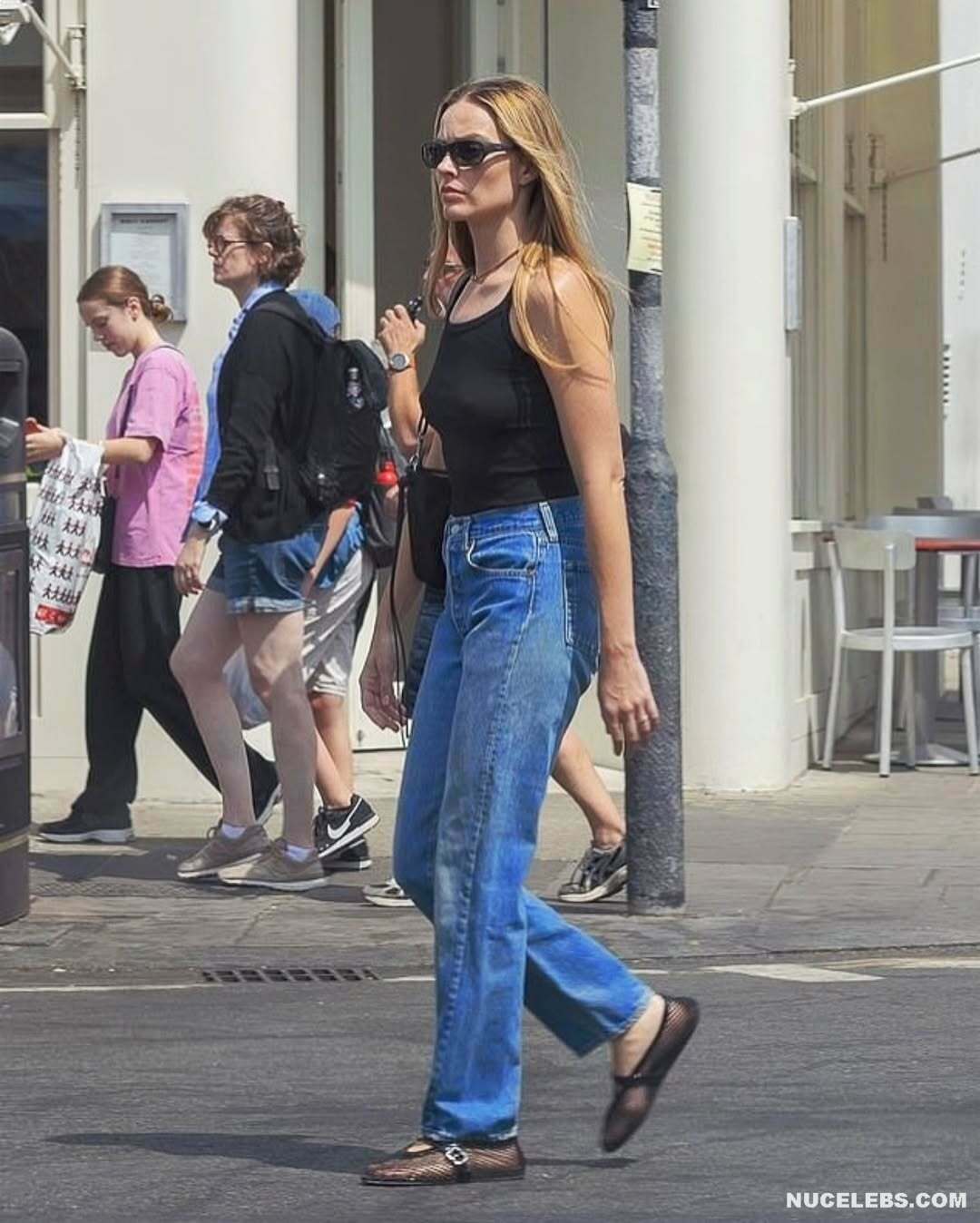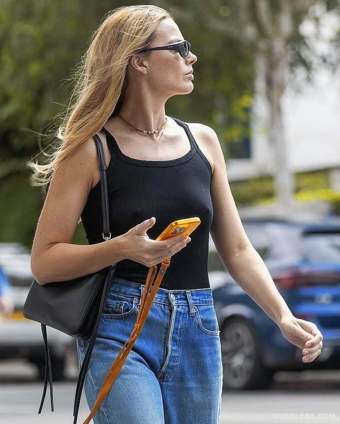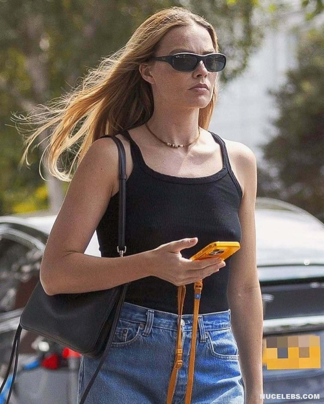 Margot Robbie has once again delighted her fans with her provocative photos. This charming Australian actress does not like wearing a bra at all. And we like it! After all, the paparazzi managed to take many pictures of Margot Robbie poking nipples! The celebrity was walking down the street, and her tight black top perfectly emphasized her miniature boobies. Oh, she is such a hot thing, it is simply impossible to resist!