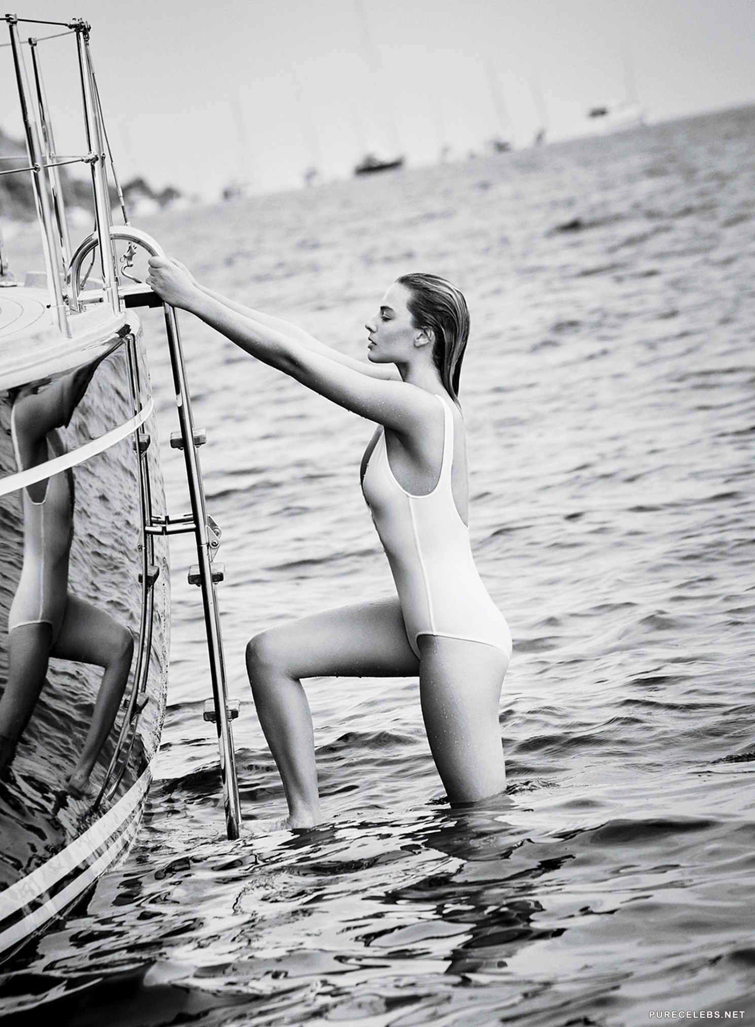 Margot Robbie captured our hearts with her roles in movies like The Wolf of Wall Street and Suicide Squad. This time the delightful blond posed for Wonderland magazine in a series of classy erotic photos that show her perky tits peeking through a wet button down shirt. The photo shoot continues with Margot posing topless on the beach, covering her amazing boobs with a large straw hat. The attractive babe is sure to spark your imagination.