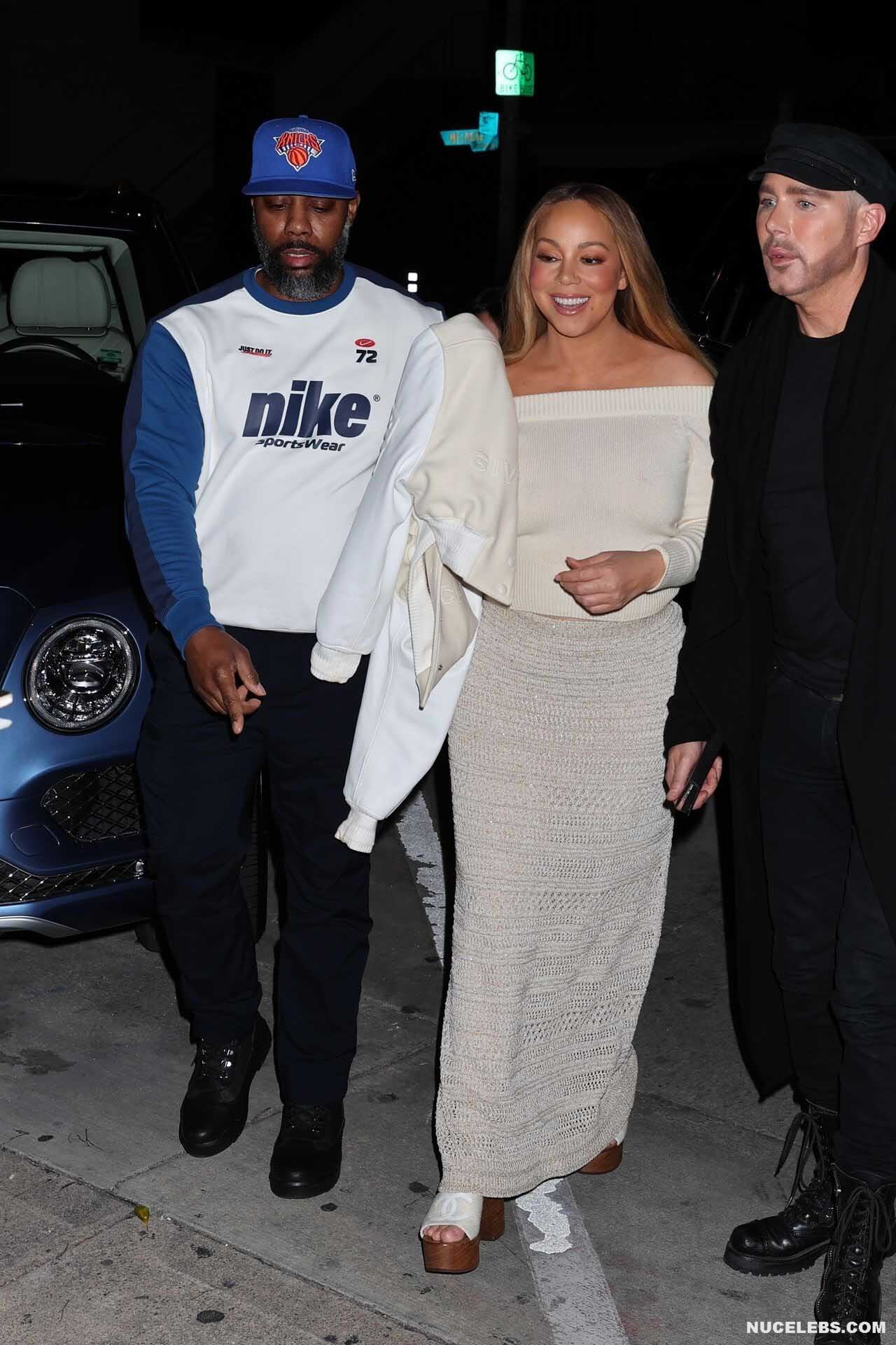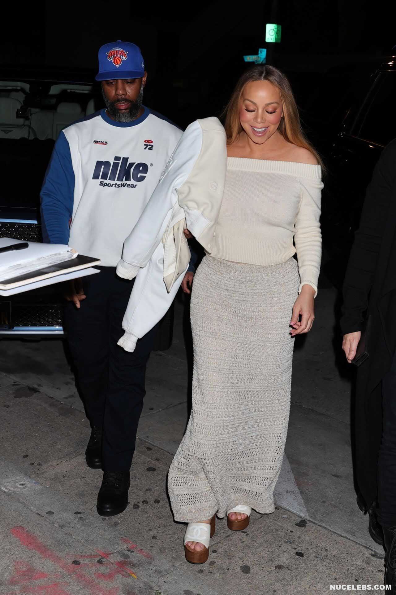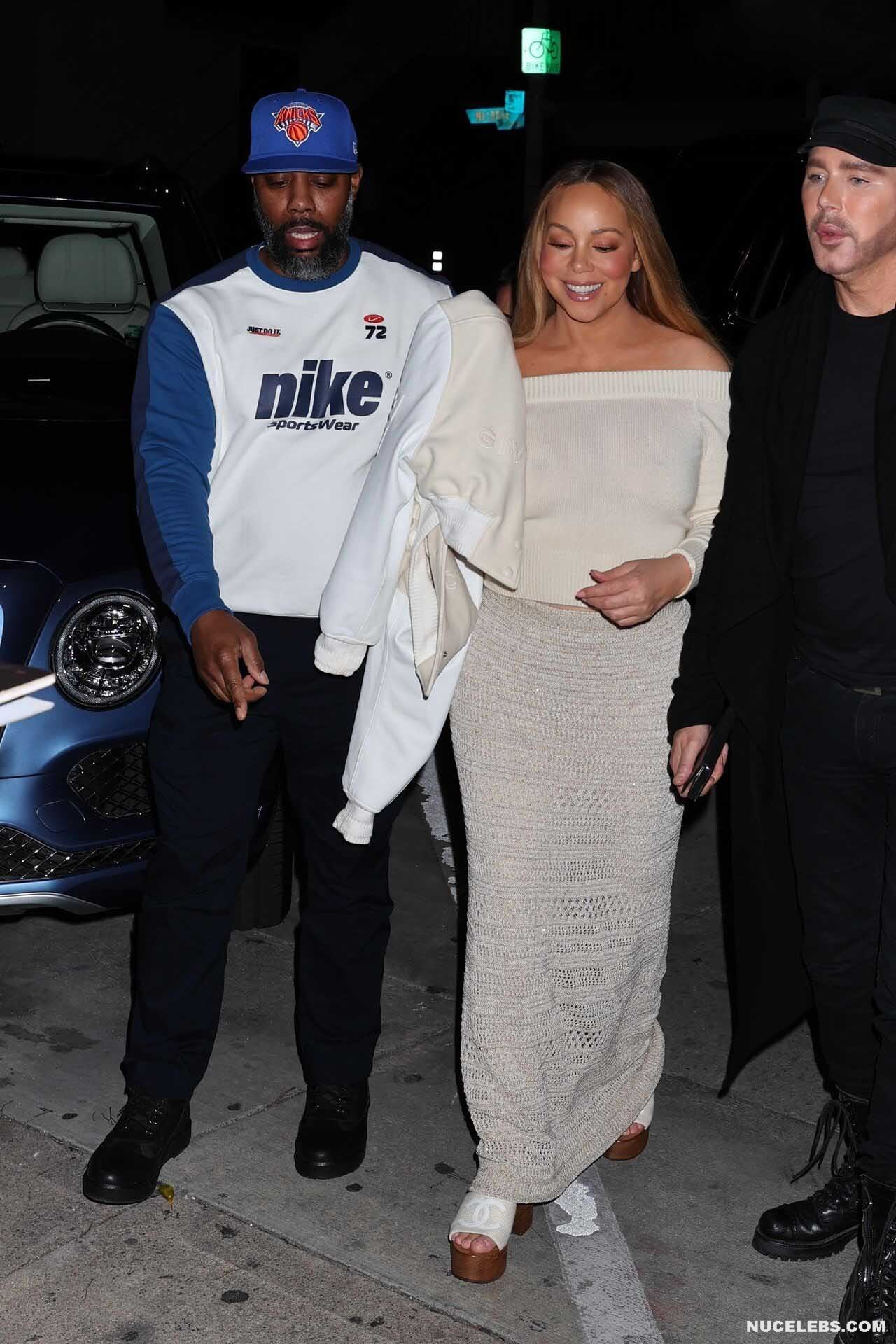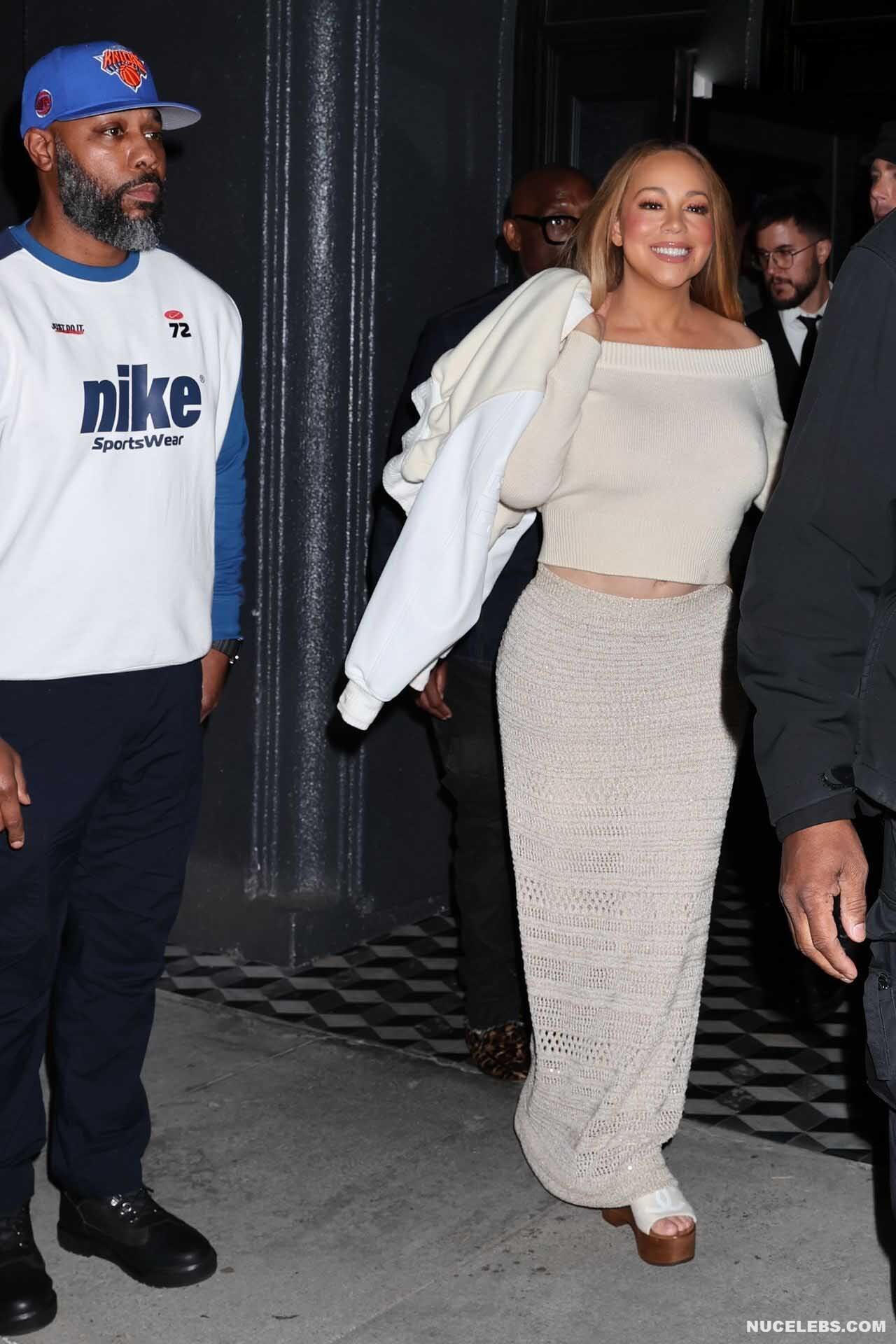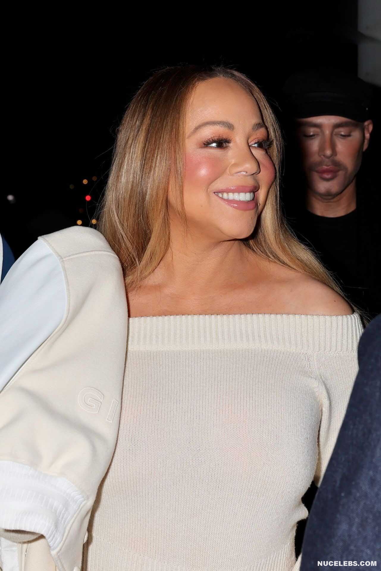 You’ll be stunned when you behold Mariah Carey at one of the events! So why will this singer surprise you so much? It turns out her outfit wasn’t so modest after all. Mariah Carey’s huge tits with brown nipples showed through the tight top of her light suit. And the long skirt perfectly emphasized the curvy hips of this celebrity. Well, this star always looks irresistible!