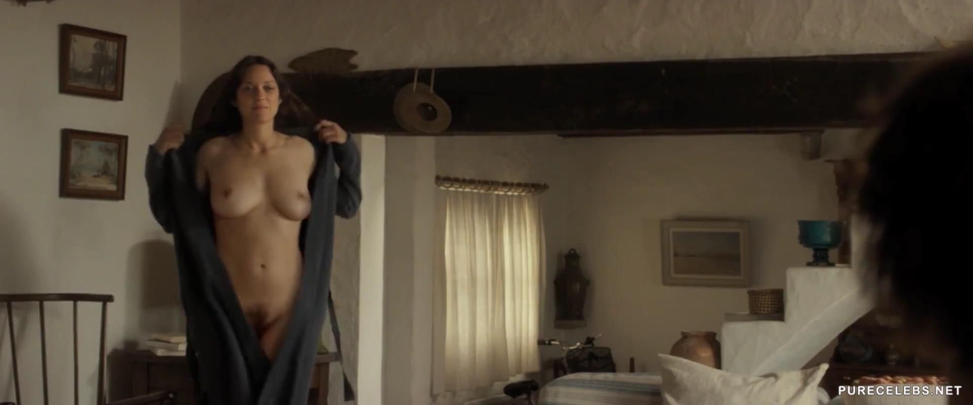 French actress Marion Cotillard has been busy exposing her lovely naked body on the set of the French drama Ismael’s Ghosts. This 42 year old MILF stars in a scene where she bares her knockers and natural bush for the camera. This sight alone is enough to make you watch this movie! Her perky little nipples stand firmly as she covers her sexy body with a bathrobe.