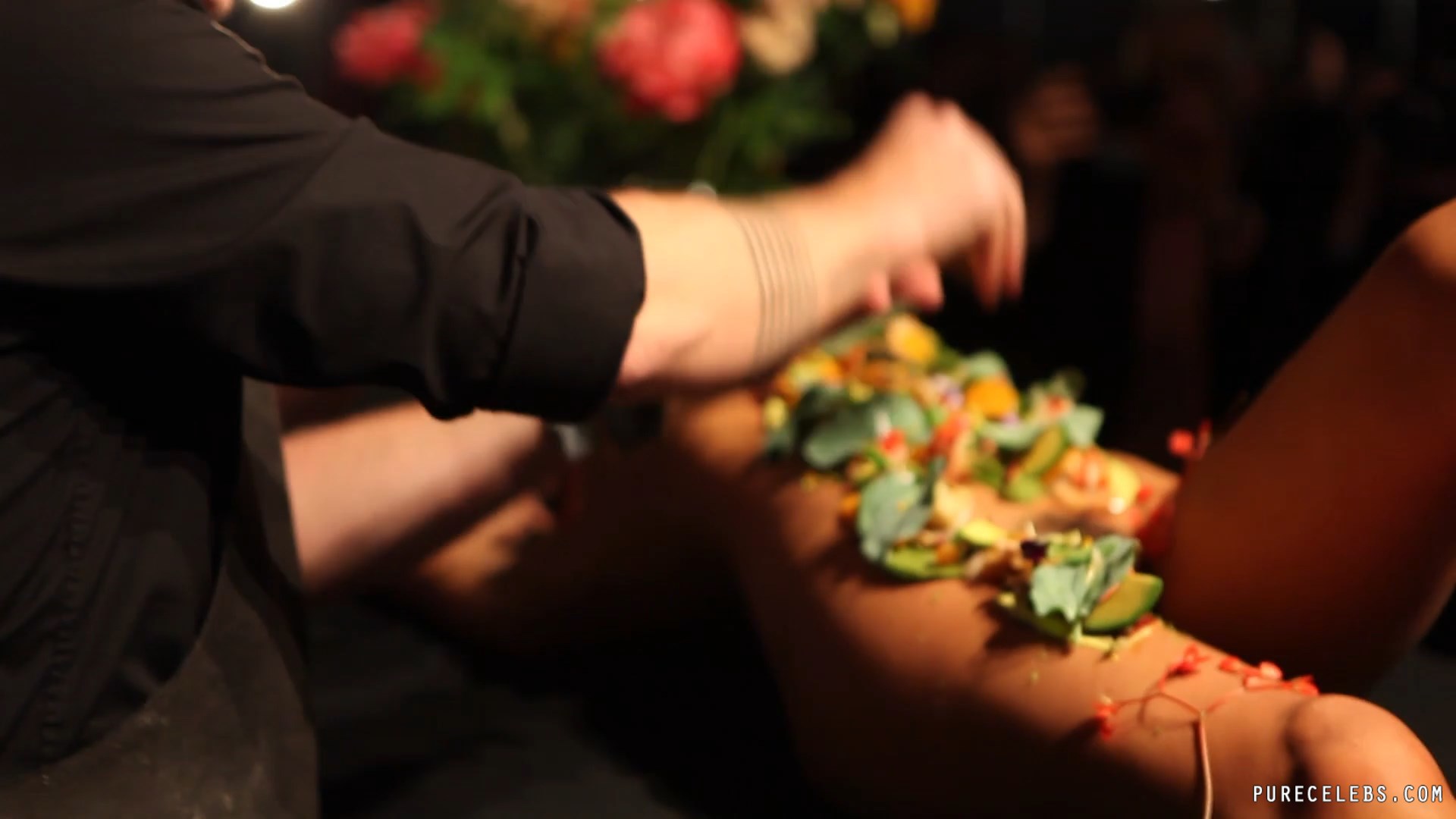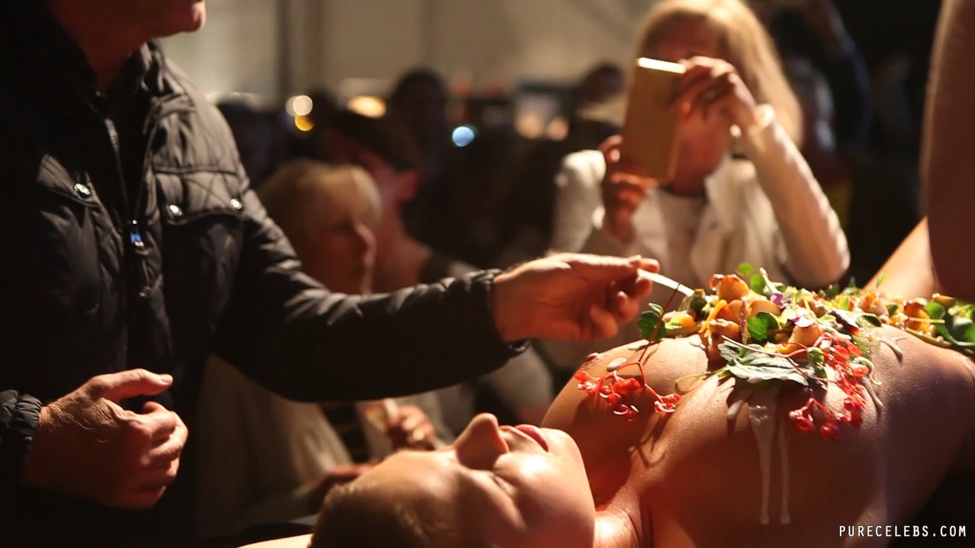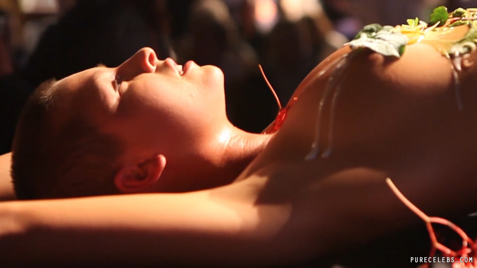 Marisa Papen posed completely nude while being covered with goods from nature. We have to say that she looks very sexy as she posed like that! And her naked body will make your head dizzy as she is so freaking hot! Well, we said enough, now it is your turn to do something about this post! Follow through and fulfill your desires with her awesome nudes from a photo shoot!