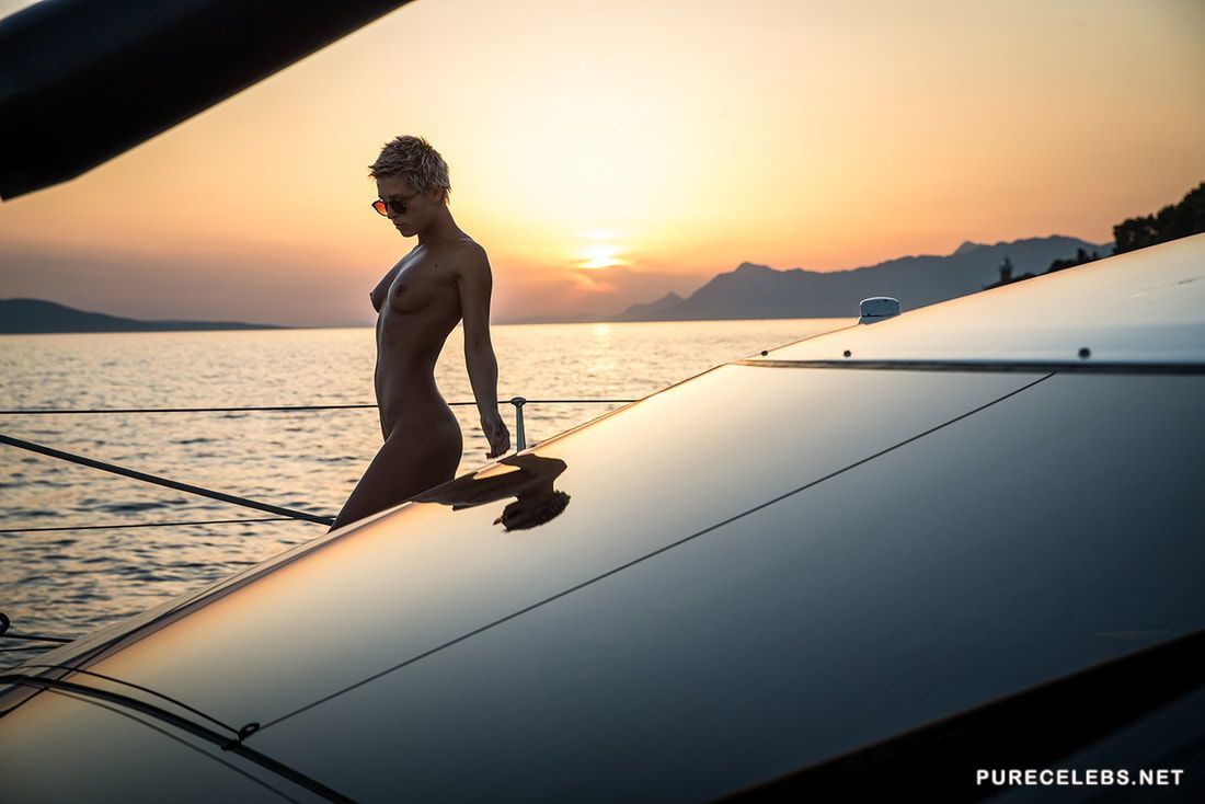 Young and reckless American model named Marisa Papen is ready to treat her fans with a super hot set of photos. Want to see some frontal nudity? Marisa is a naughty babe who loves to party like a rockstar. Short haired blondie does a fantastic photo shooting on her boat. Marisa is even eager to display her hairy pussy in front of the camera!