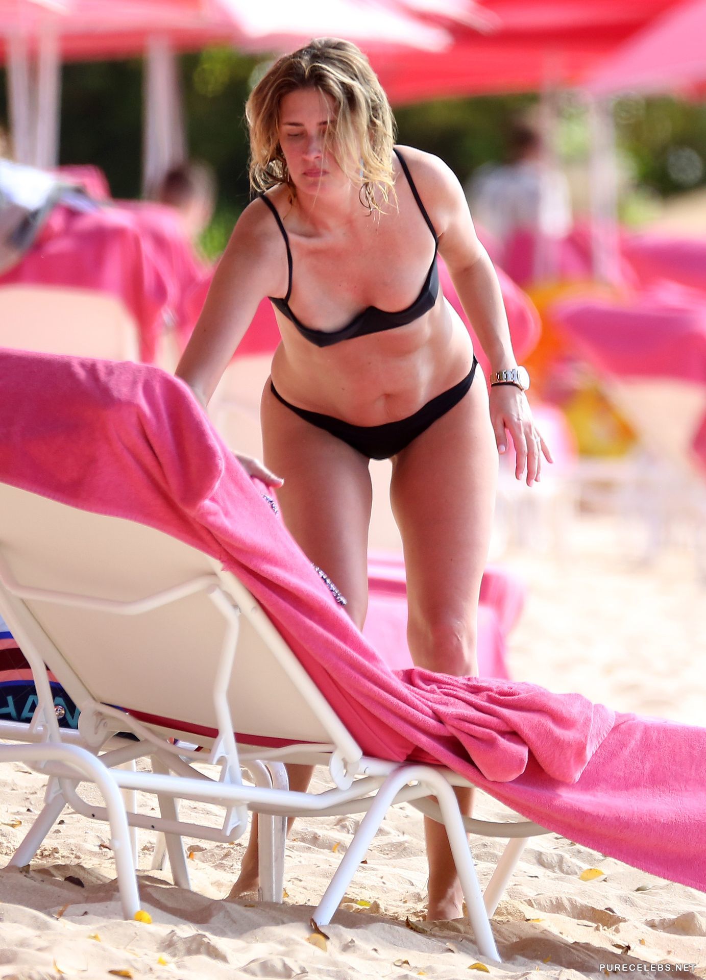 Rhea Durham is not shy to reveal her beach body, and she was recently seen in Barbados, wearing bikinis and having a great time. This amazing, American model is mother of four and a happy wife of Mark Wahlberg. We like how bikini bottoms looked on her, but when it comes to tops, it seems like there is space for models to be more optimal, according to her body type.