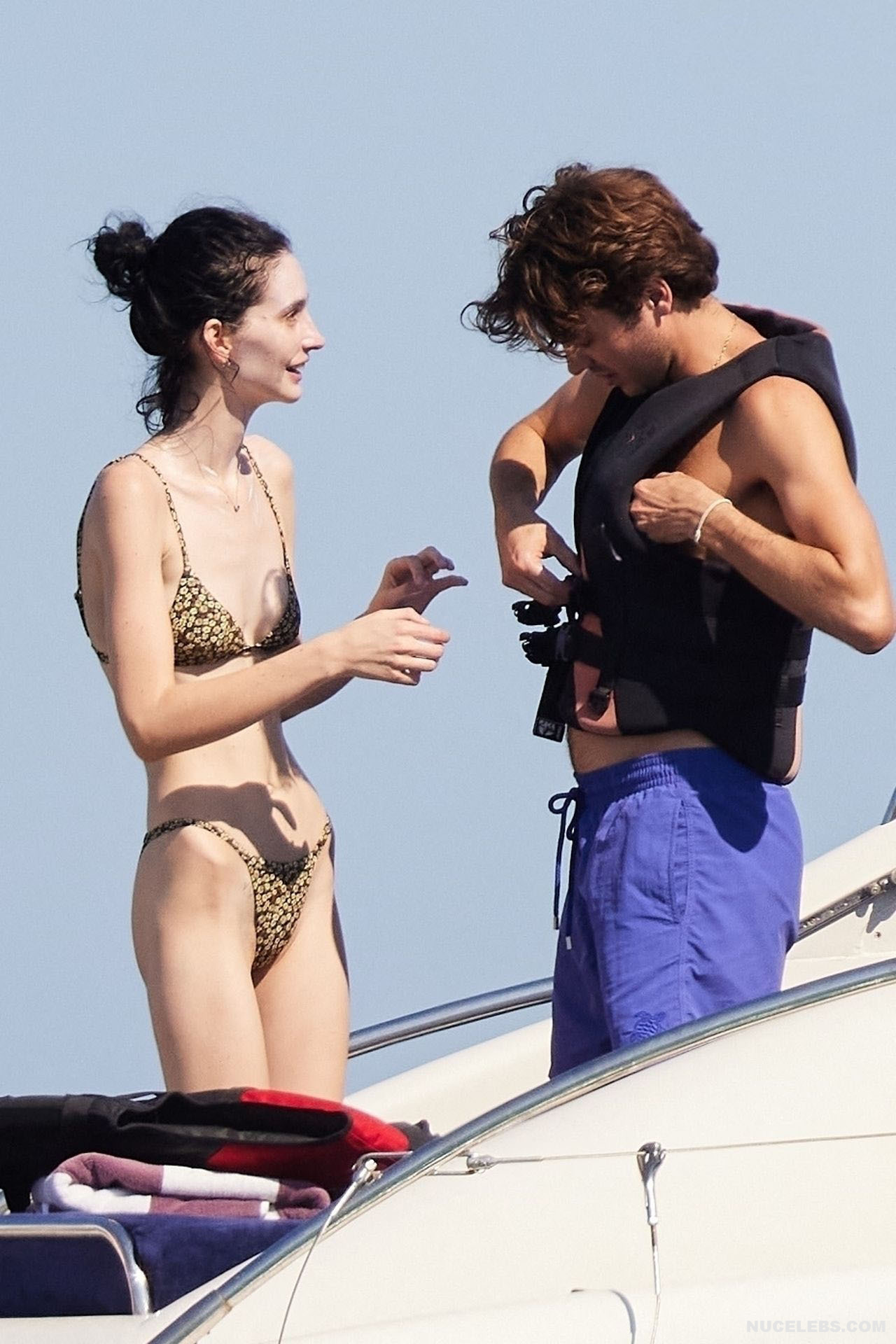 Join Meadow Walker on her invigorating yacht getaway. This 24-year-old model embraced the sun and sand in a trendy bikini. However, this celebrity seems to have overlooked the fact that a bra might not hold her juicy peaches. So, when Meadow Walker was boarding the yacht in a wet bikini, her nude sweet boob with a hard nipple slipped out! Well, it looked very tempting, didn’t it? I wish the panties would slip off this beauty so we could see Meadow Walker’s nude booty!