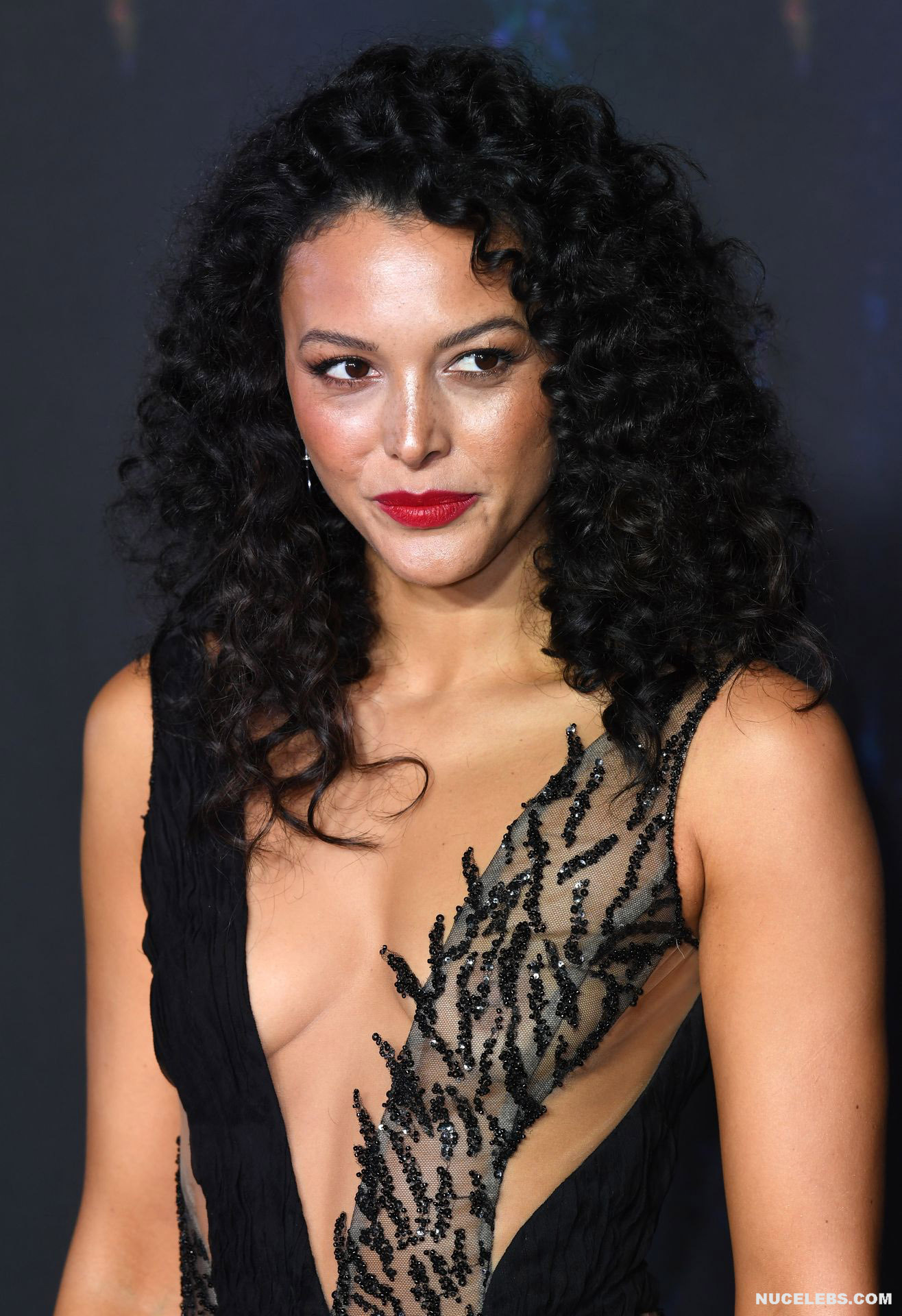 Mecia Simpson decided to impress you with her nude boobs during her appearance at the premiere of ‘The Witcher’ Season 2. So, this actress chose a long dress with black and transparent inserts and decorated with black beads as her outfit. It is difficult to understand if the girl put on underwear, but she was definitely not wearing a bra. And Mecia Simpson nude boobs with brown nipples were superbly visible through the sheer top of her dress!