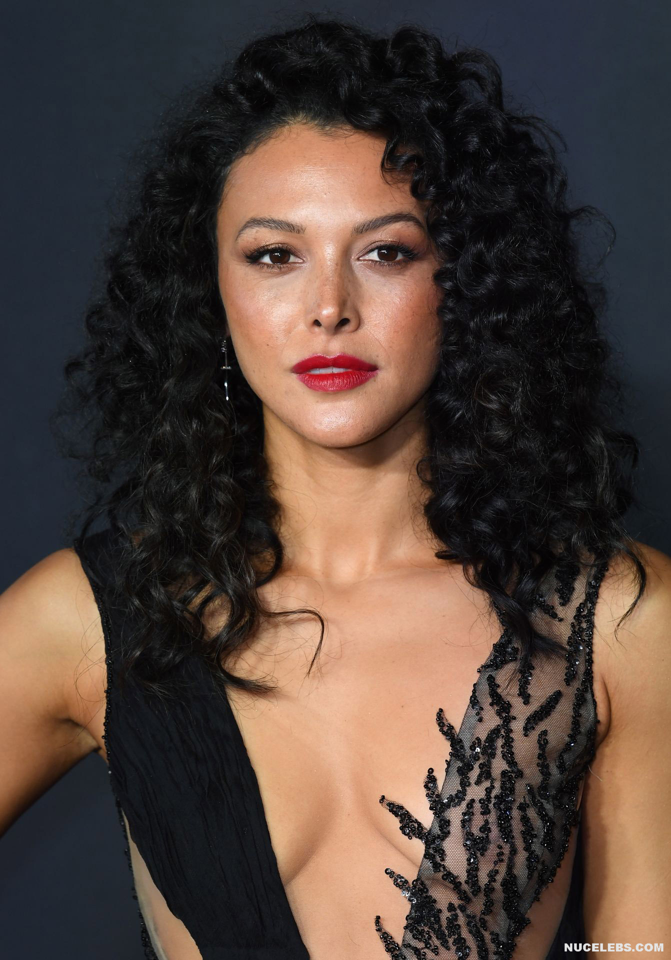 Mecia Simpson decided to impress you with her nude boobs during her appearance at the premiere of ‘The Witcher’ Season 2. So, this actress chose a long dress with black and transparent inserts and decorated with black beads as her outfit. It is difficult to understand if the girl put on underwear, but she was definitely not wearing a bra. And Mecia Simpson nude boobs with brown nipples were superbly visible through the sheer top of her dress!