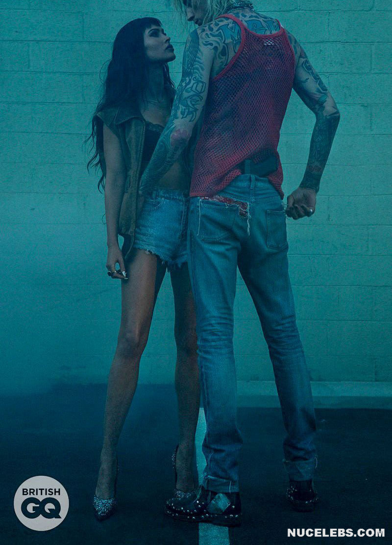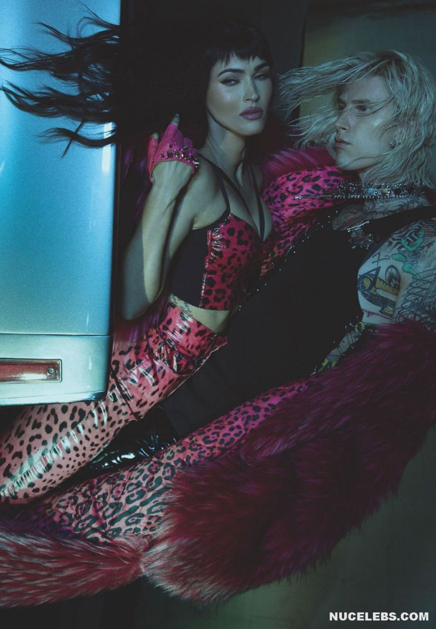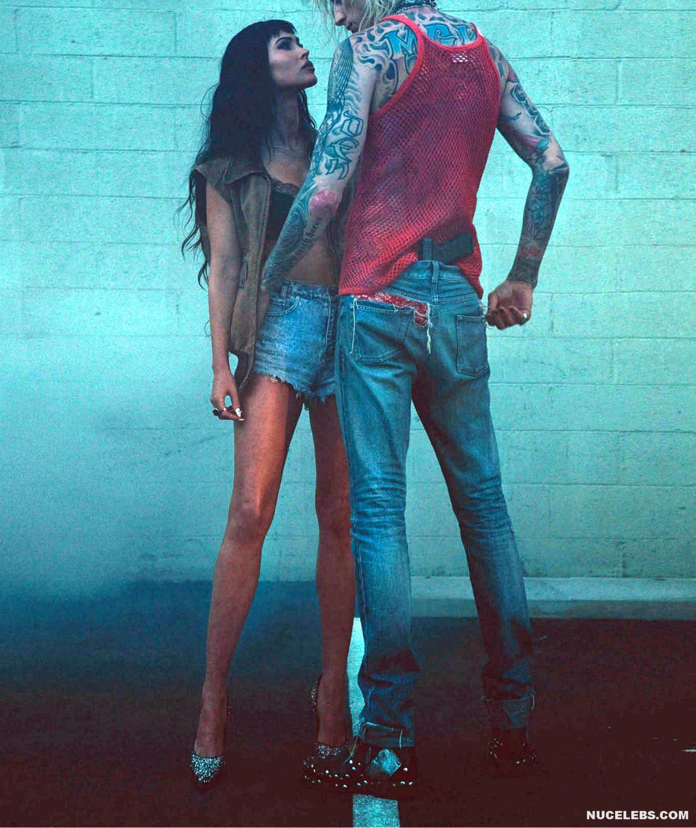 Megan Fox’s outfits are getting skimpty every day and less and less cover her nude body. This star recently starred in a photo shoot for GQ (2021). There, this American actress not only passionately kissed a man in provocative poses. Megan Fox even showed off her nude ass in one of the photos! So this hot brunette was sitting on a leather couch with a gun in her hand. At the same time, she was wearing a miniature leather black bra. But even a hint of panties on Megan Fox nude butt was not visible!