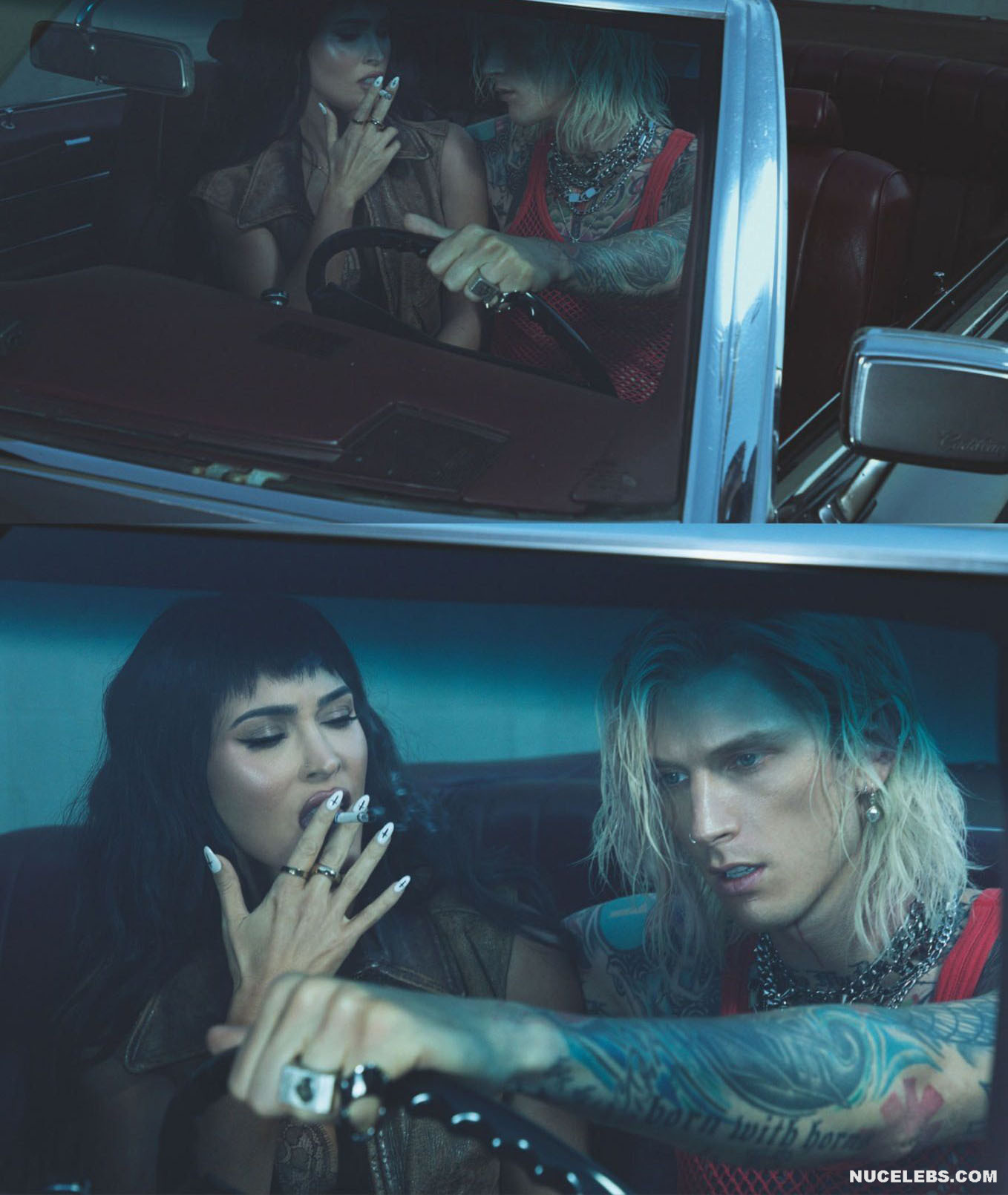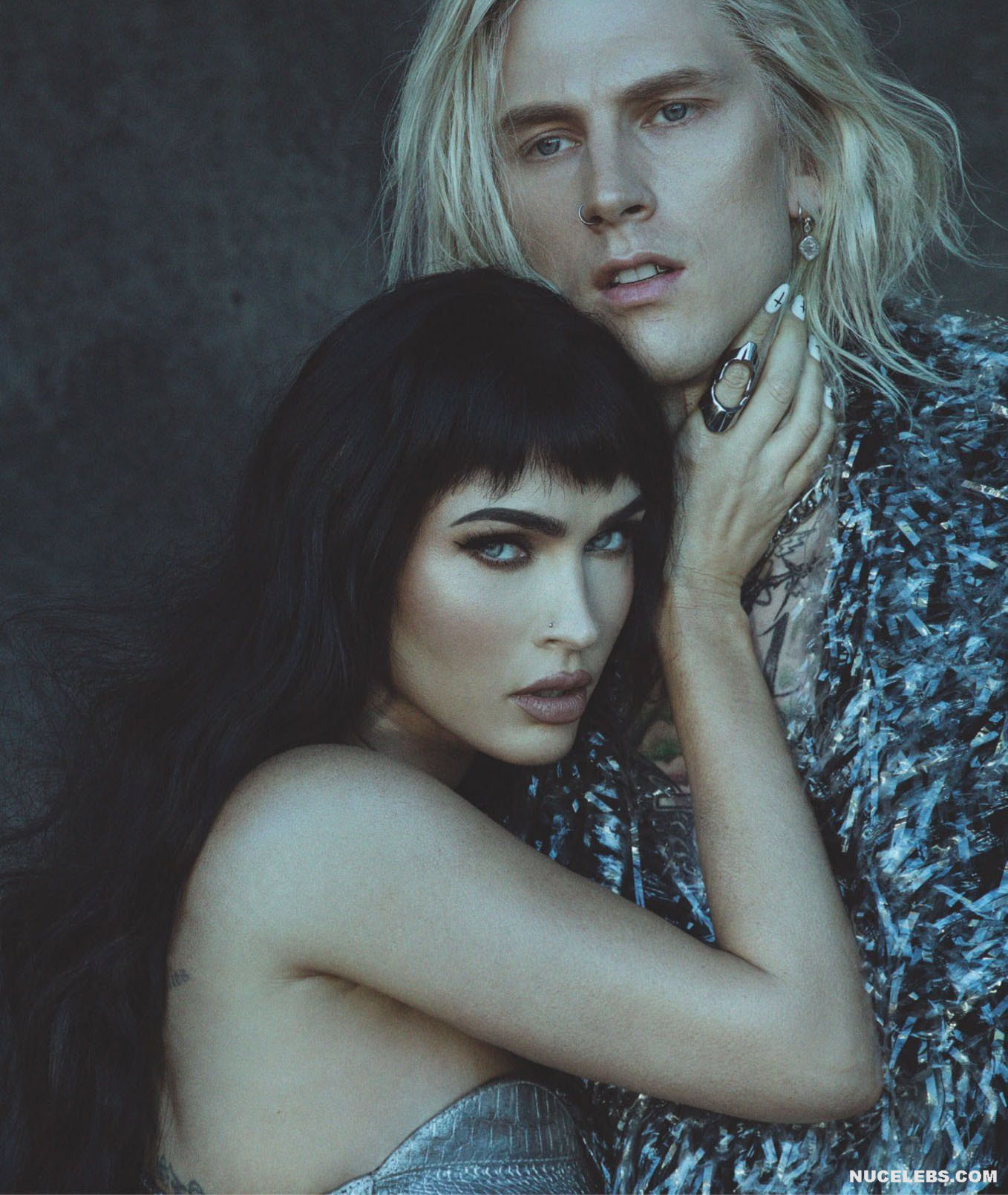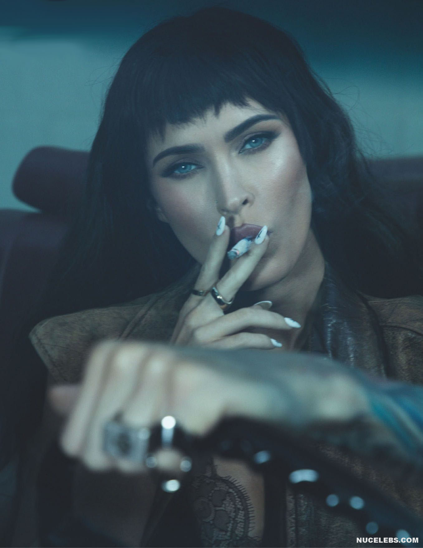 Megan Fox’s outfits are getting skimpty every day and less and less cover her nude body. This star recently starred in a photo shoot for GQ (2021). There, this American actress not only passionately kissed a man in provocative poses. Megan Fox even showed off her nude ass in one of the photos! So this hot brunette was sitting on a leather couch with a gun in her hand. At the same time, she was wearing a miniature leather black bra. But even a hint of panties on Megan Fox nude butt was not visible!