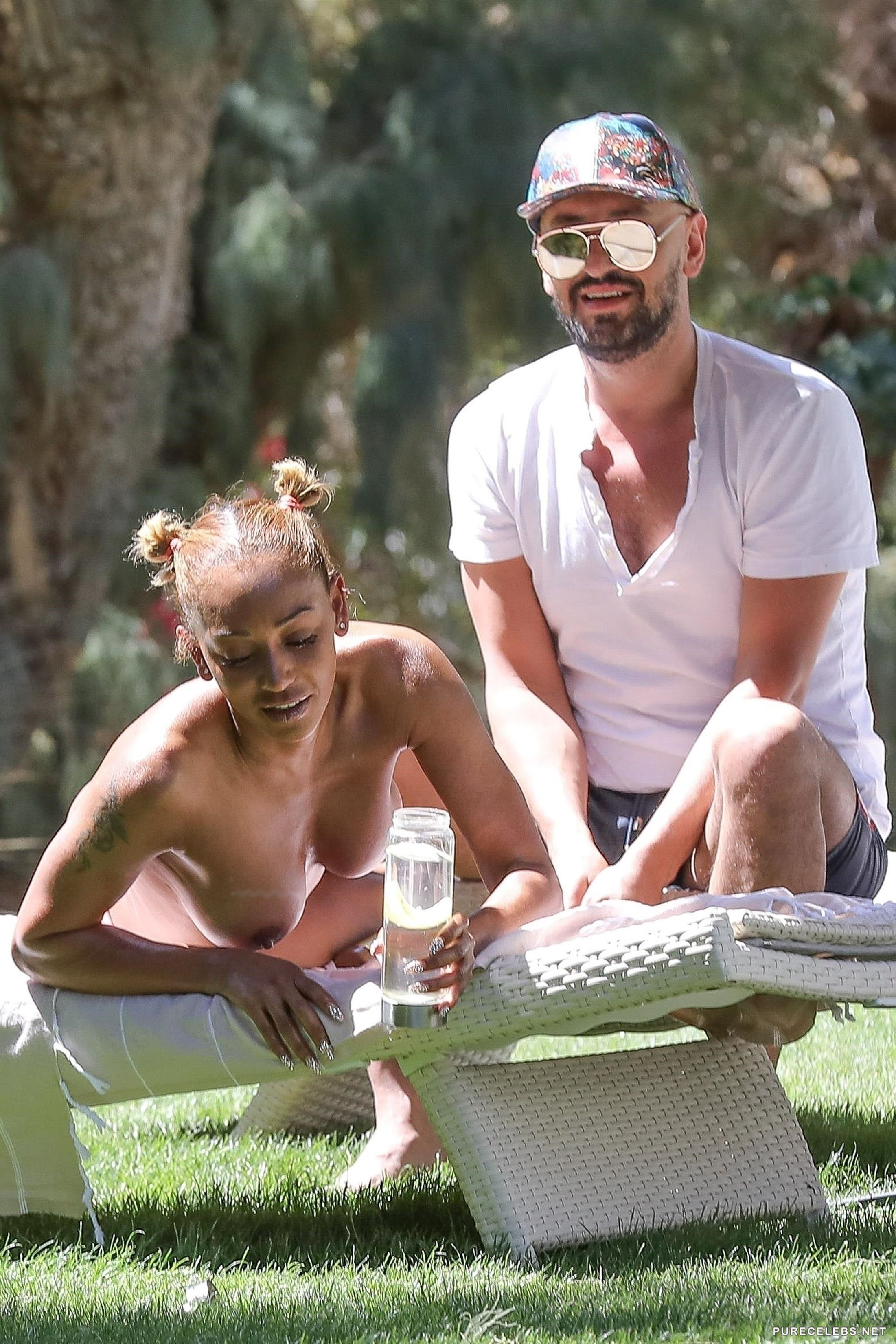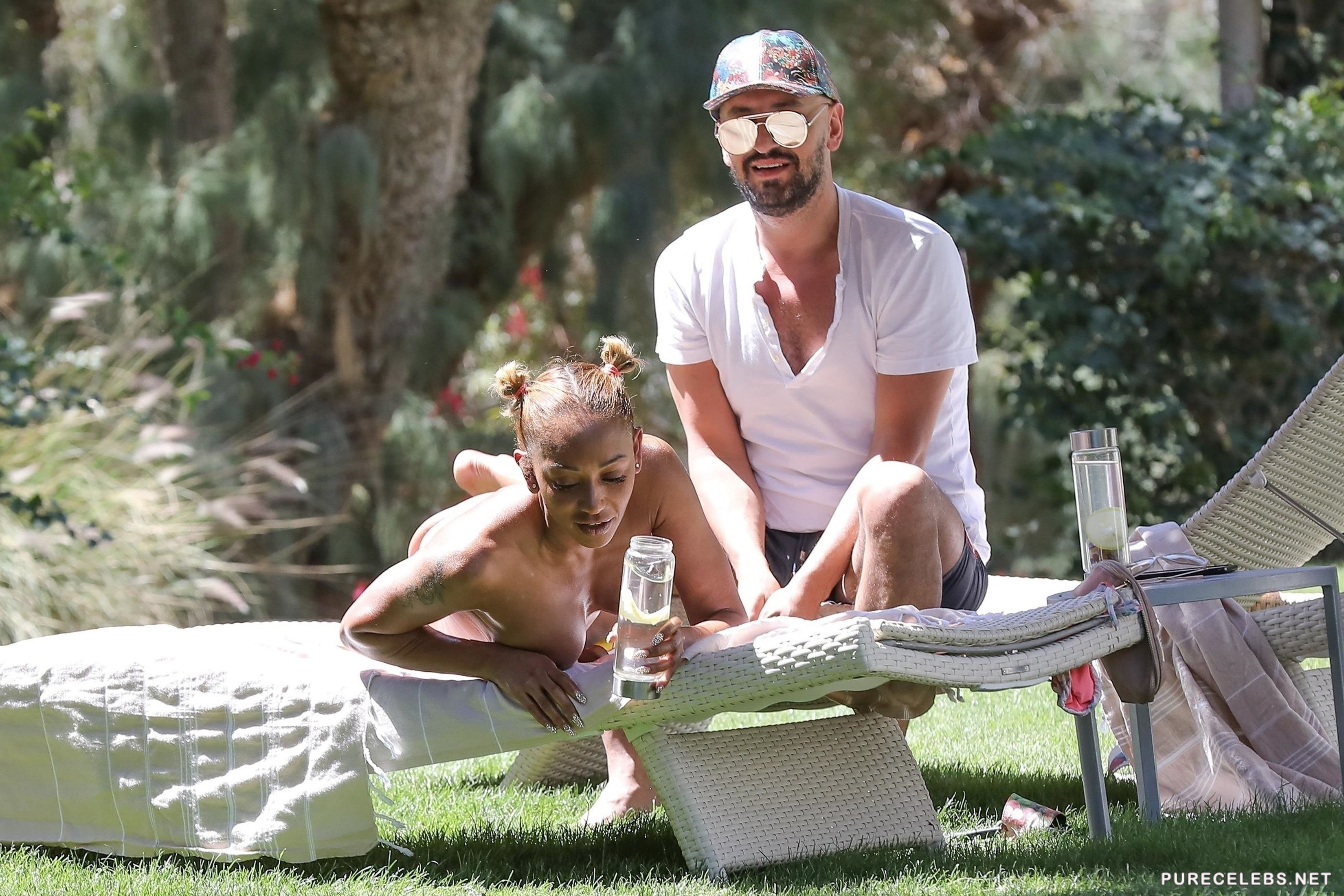 Melanie Brown, writer, dancer singer and former member of band Spice Girls, has many talents and she is also really hot. Finally paparazzi managed to get some good photos of her sunbathing topless in her backyard with her boyfriend. She is laying in the sun, while her boyfriend gives her oily massage of her long sexy legs, her back but paying special attention to those big juicy boobs and amazing tight ass.