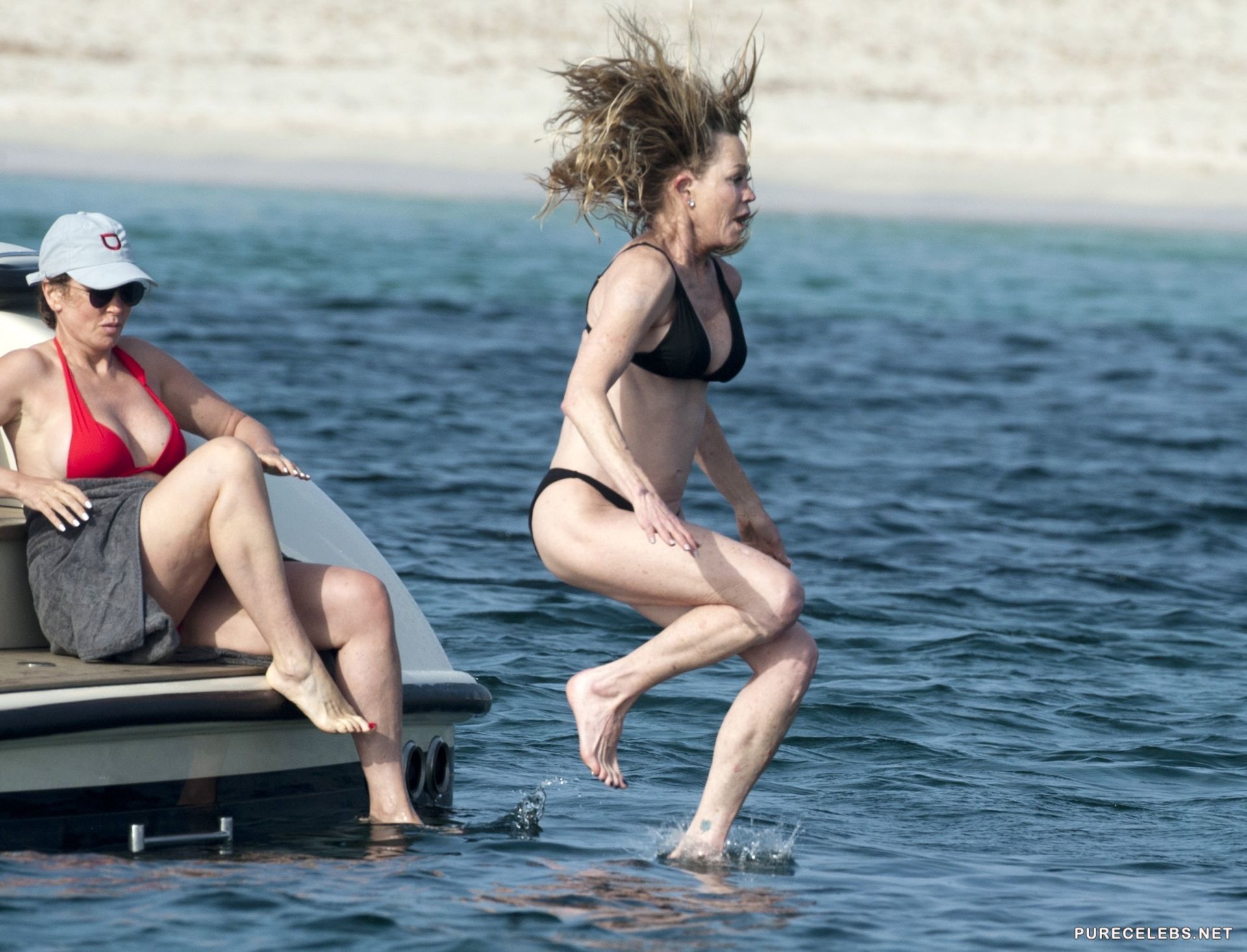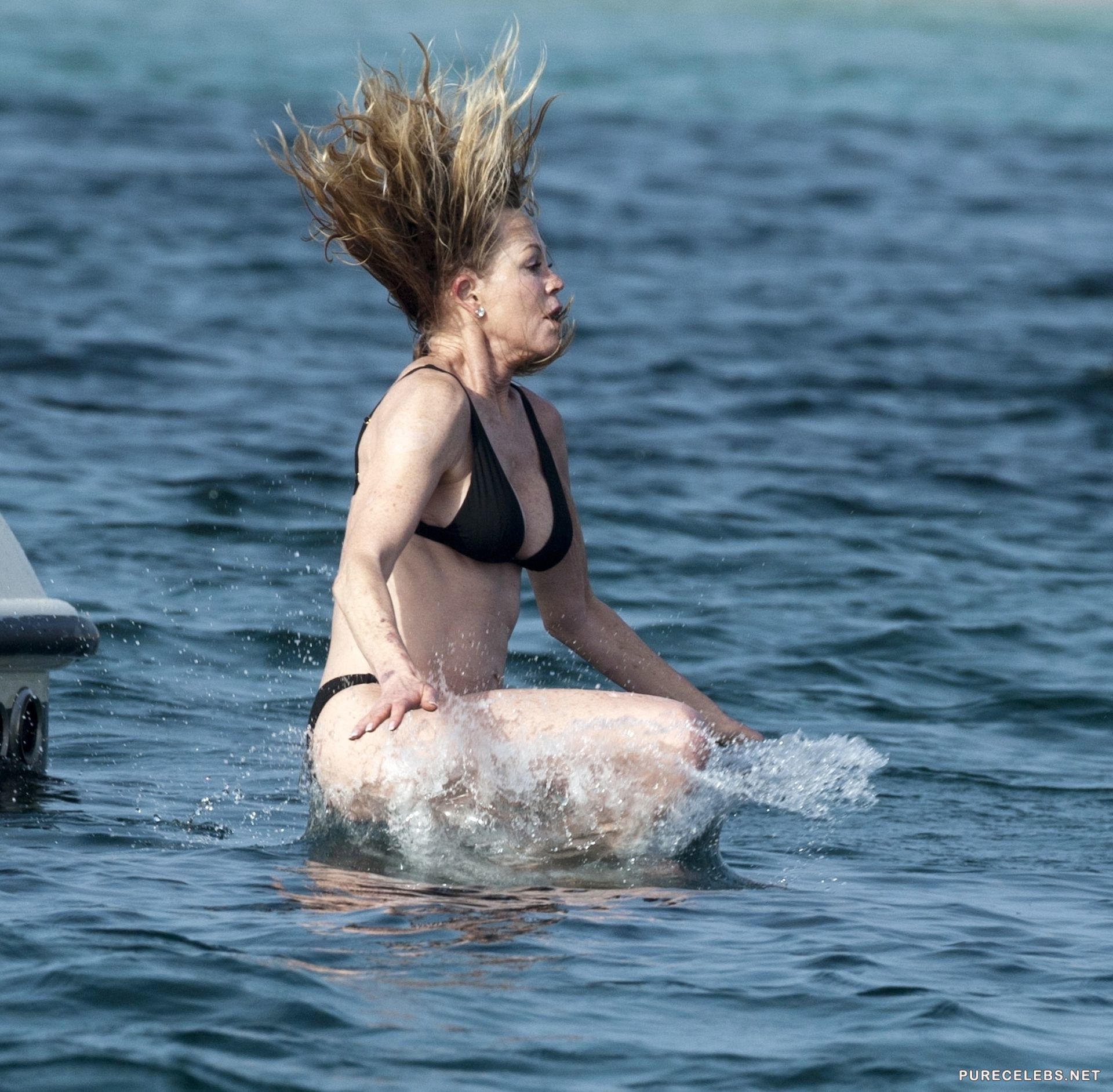 Despite her age, American actress Melanie Griffith looks very sexy and seductive when she takes off her clothes and goes to the beach in a bikini. A 61-year-old celebrity was recently spotted on a beach in a black little bikini that perfectly accentuated the curves of her body. Her beautiful breasts looked great in a small bra, and her buttocks in wet panties looked just breathtaking, when she came out of the water!