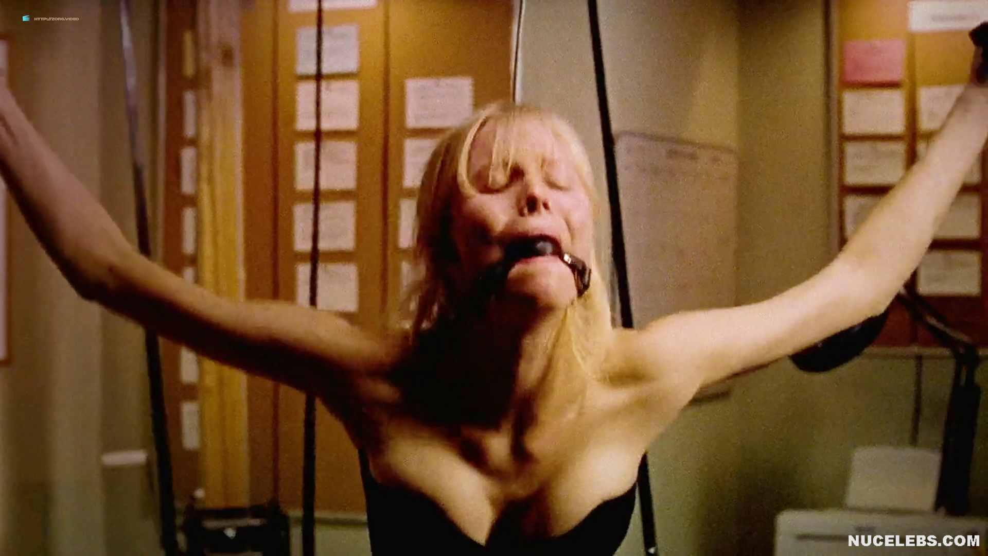 You will definitely be impressed by some scenes from Love Object if you haven’t seen it yet. There, this hot star fell into the hands of a maniac who did whatever he wanted with her. For example, she tied up this American actress and put a gag in her mouth. Then, he pushed down her tight black bodysuit. Melissa Sagemiller’s nude boobies jumped out, but that didn’t stop the man. He concentrated on preparing the instruments to carry out some surgical manipulations with her.