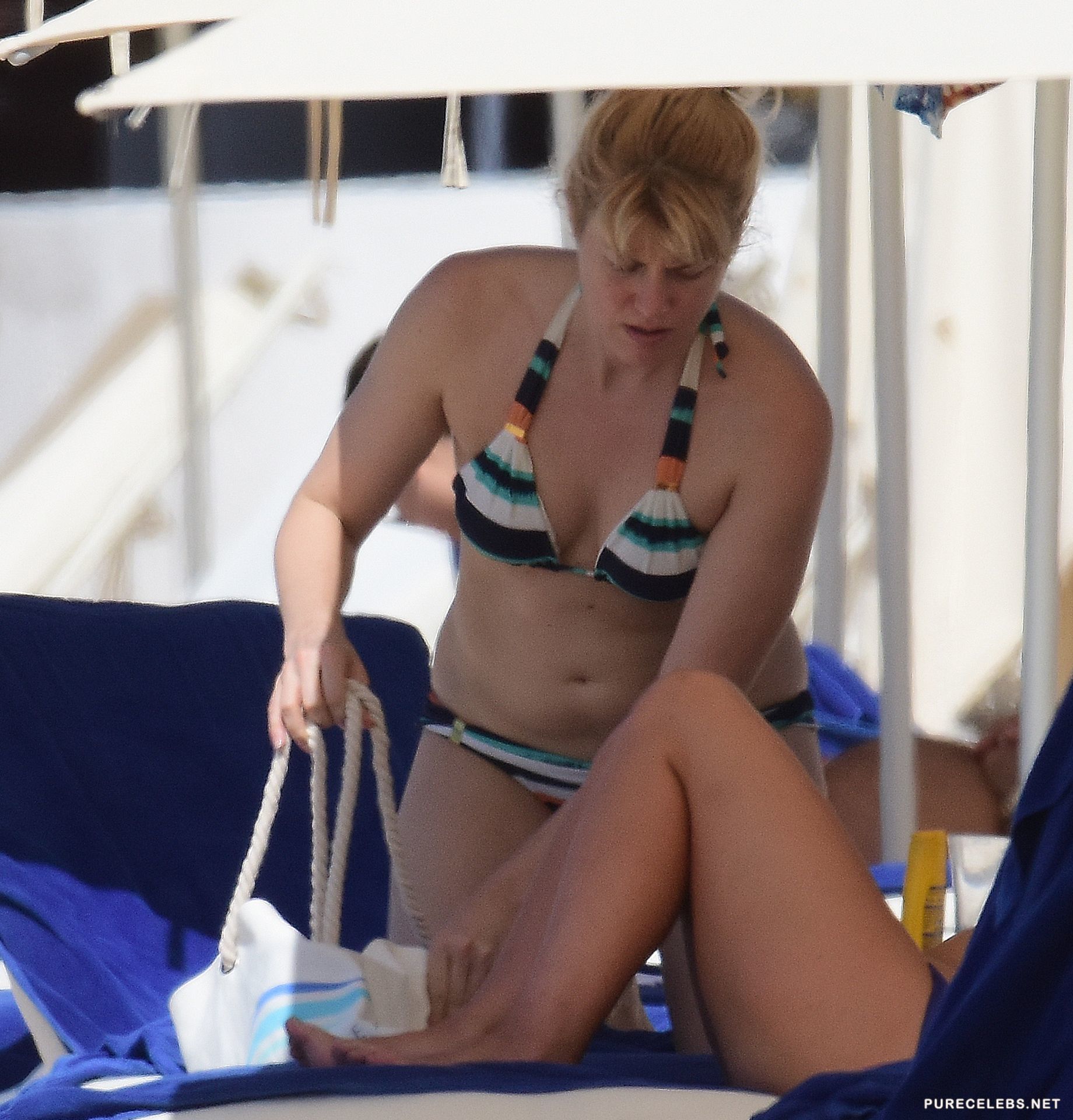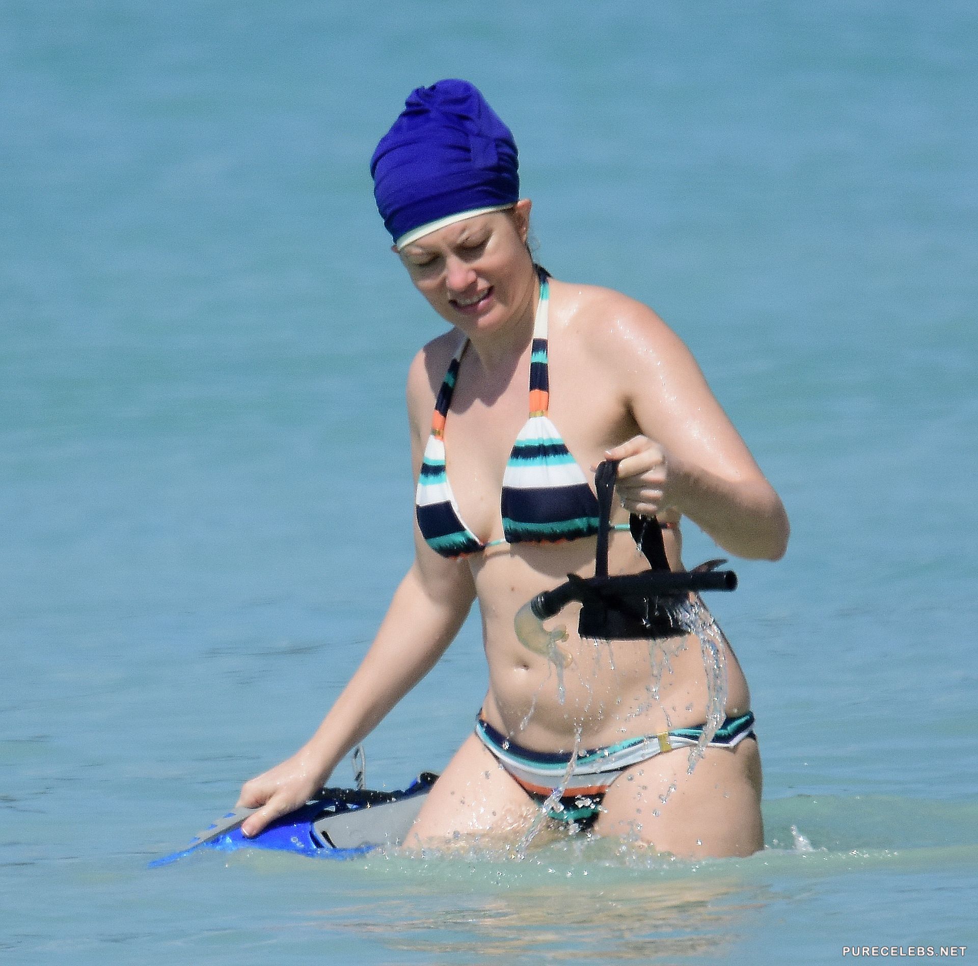 American actress that was linked to Nick Rhodes from Duran Duran for years, Meredith Ostrom was caught by paparazzi, on the beach, rocking a bikini and covering her hair while going into the water. Looking good for a woman in her forties, this blonde is focused on her career and takes a small break here and there, to relax and do some snorkeling, as we see that she likes it.