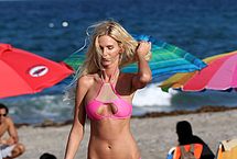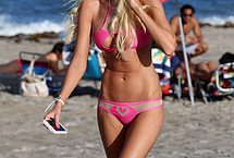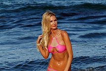 Blonde model Michelle Pieroway has the body of a goddess, and she’ll be damned if she wasn’t going to show it off at the beach. To make sure people around the world could take in this beautiful sight, paparazzi snapped these hot photos of her. Long blonde hair, a tiny pink bikini, and a slender body adorned with long silky legs, make this babe a ten out of ten.