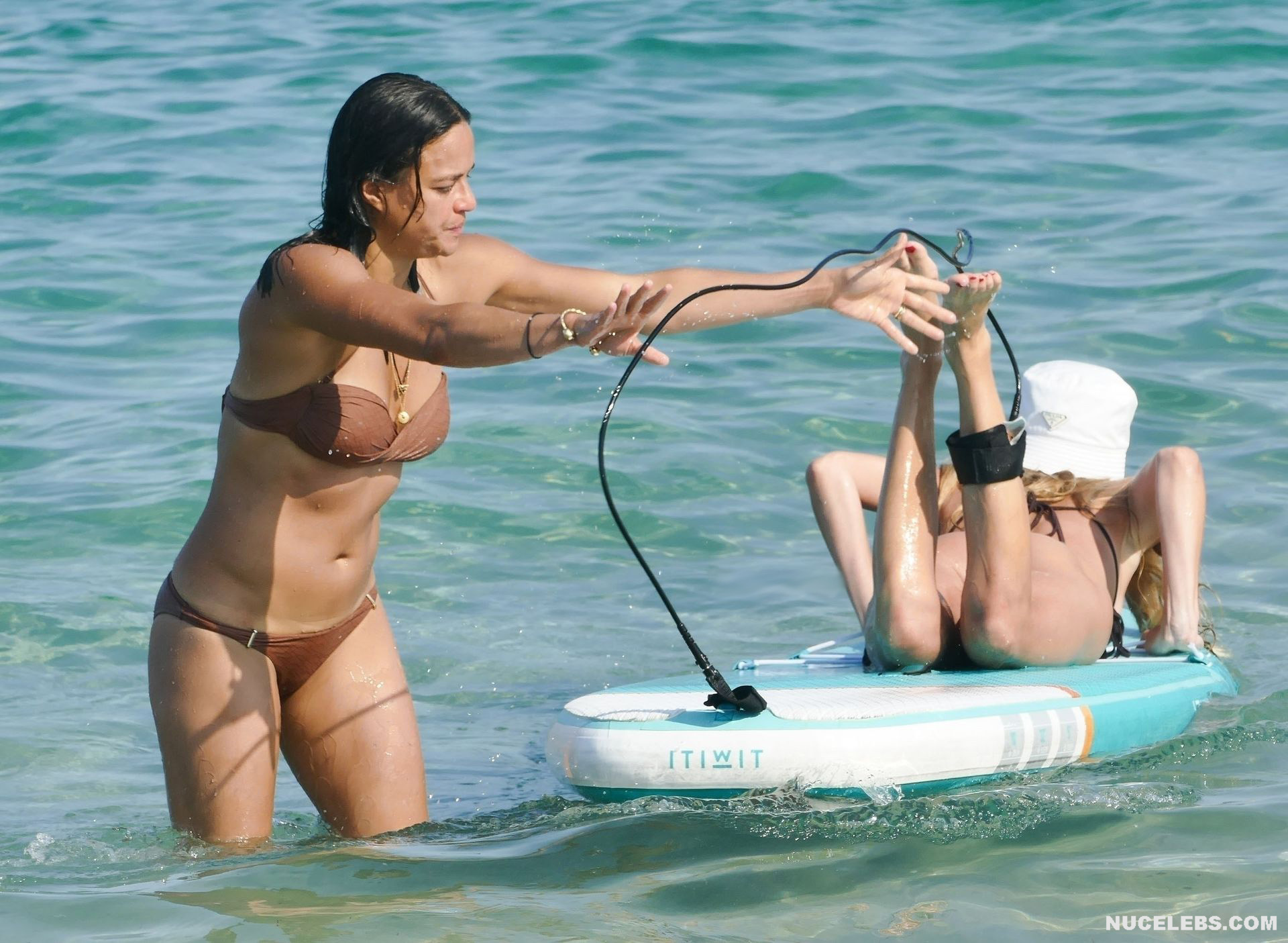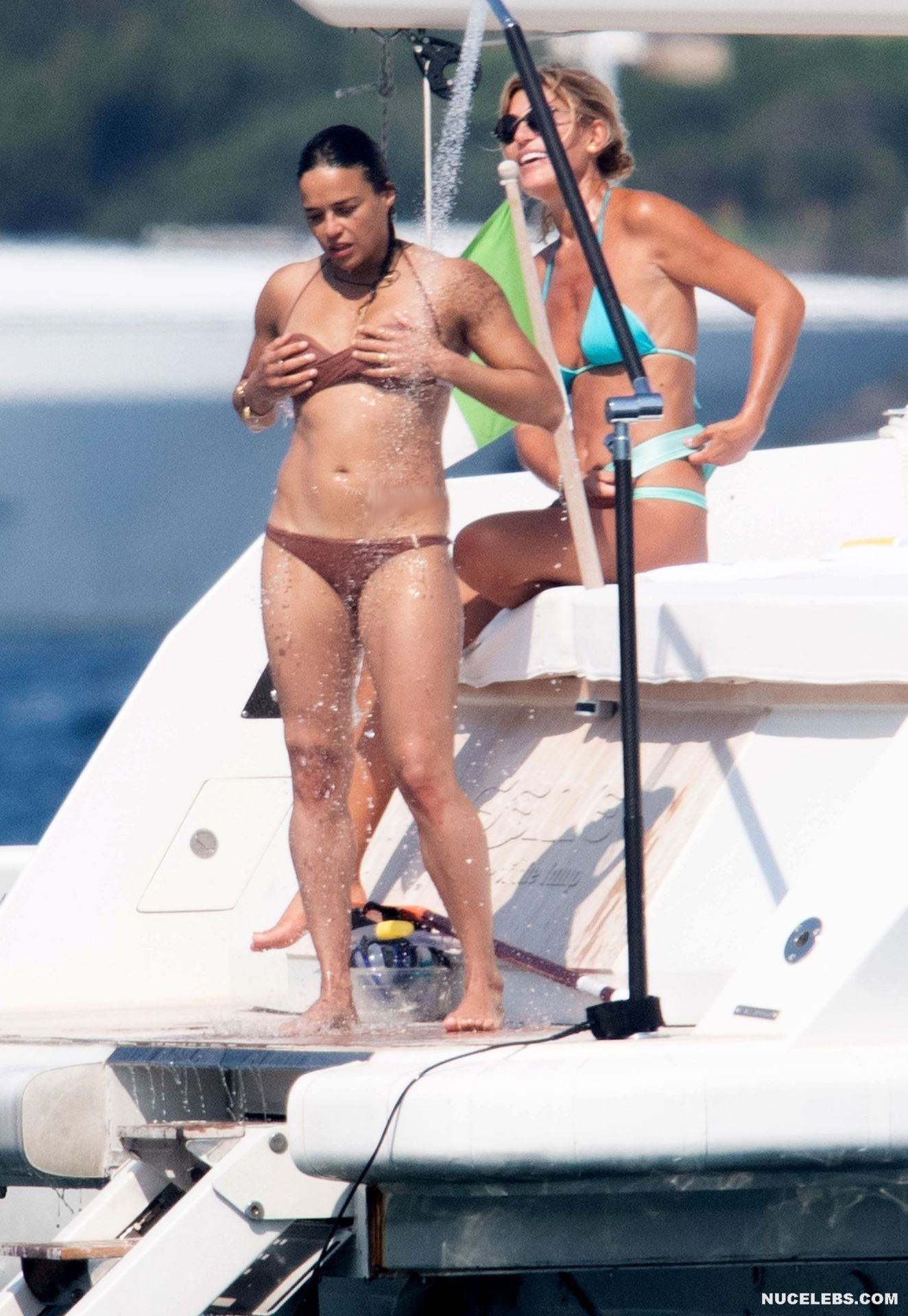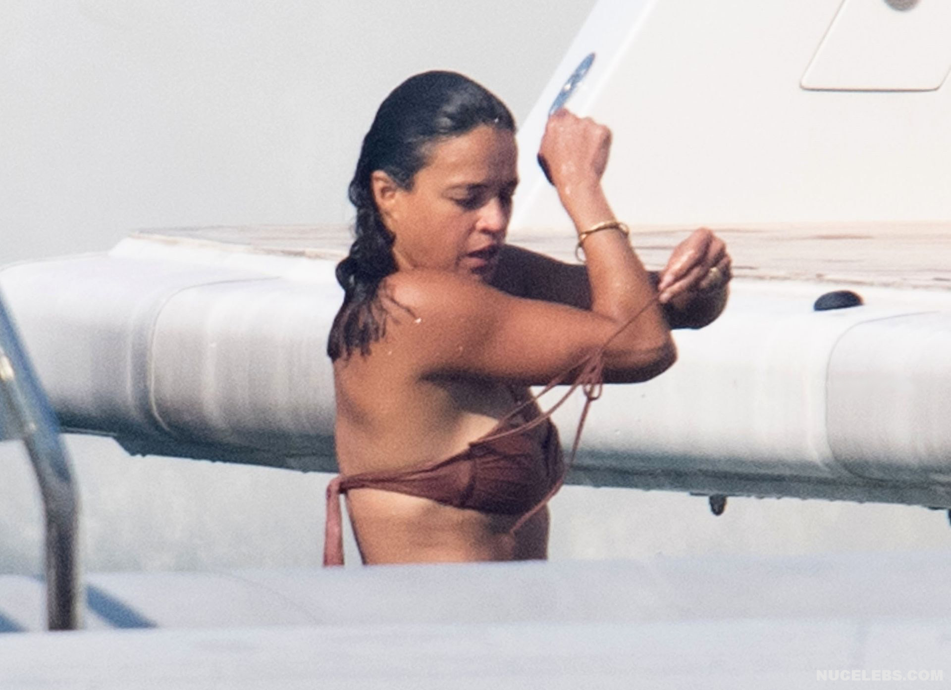 The paparazzi managed to catch Michelle Rodriguez during her sailing trip. Of course, everyone hoped to see Michelle Rodriguez nude pictures, but this time there will be none. But this American actress will show her gorgeous cameltoe in a brown wet bikini. But friend Michelle Rodriguez decided to act more radically and showed her nude boob with a brown nipple. So enjoy the pictures!