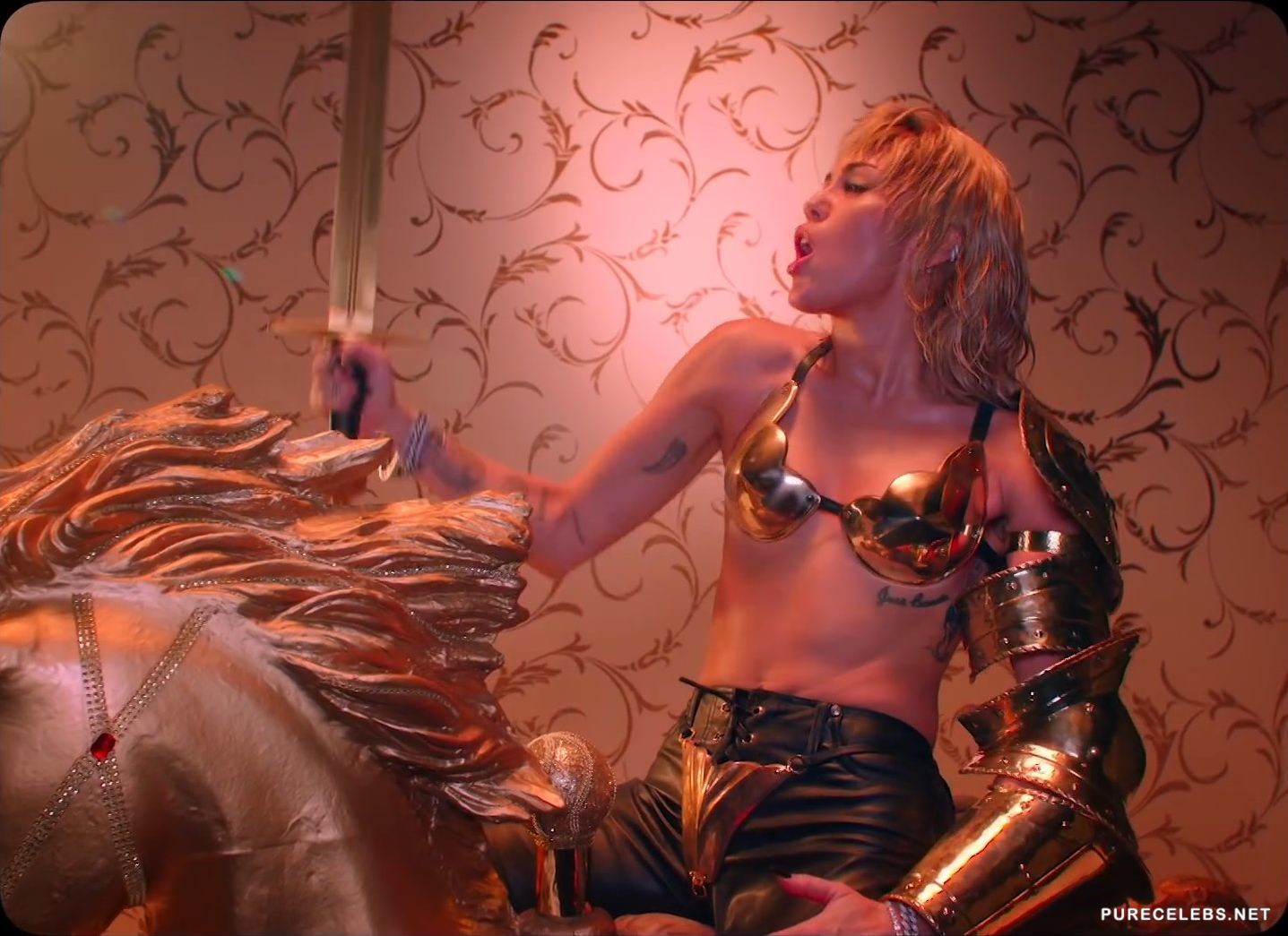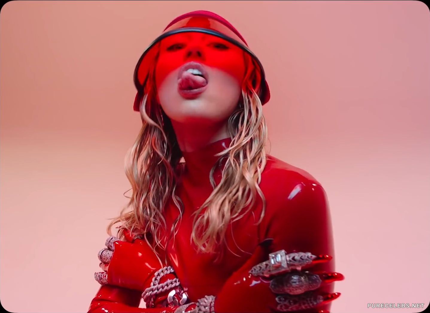 Perhaps you have long been accustomed to how shocking and unpredictable Miley Cyrus can be, but no one has released such a hot clip as her “Mother’s Daughter” for a long time. This clip is literally riddled with red color, sexuality and passion. Miley was wearing a latex red suit, and the place where her sweet pussy was located was spiked. The singer was sexually clinging to her partners in the video, and it was hot!