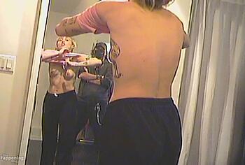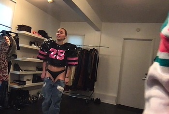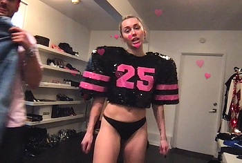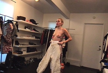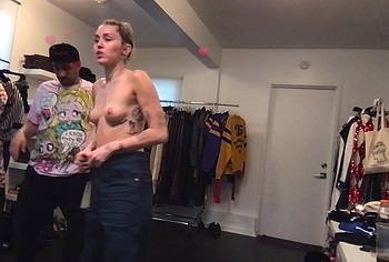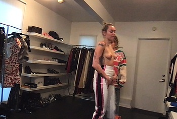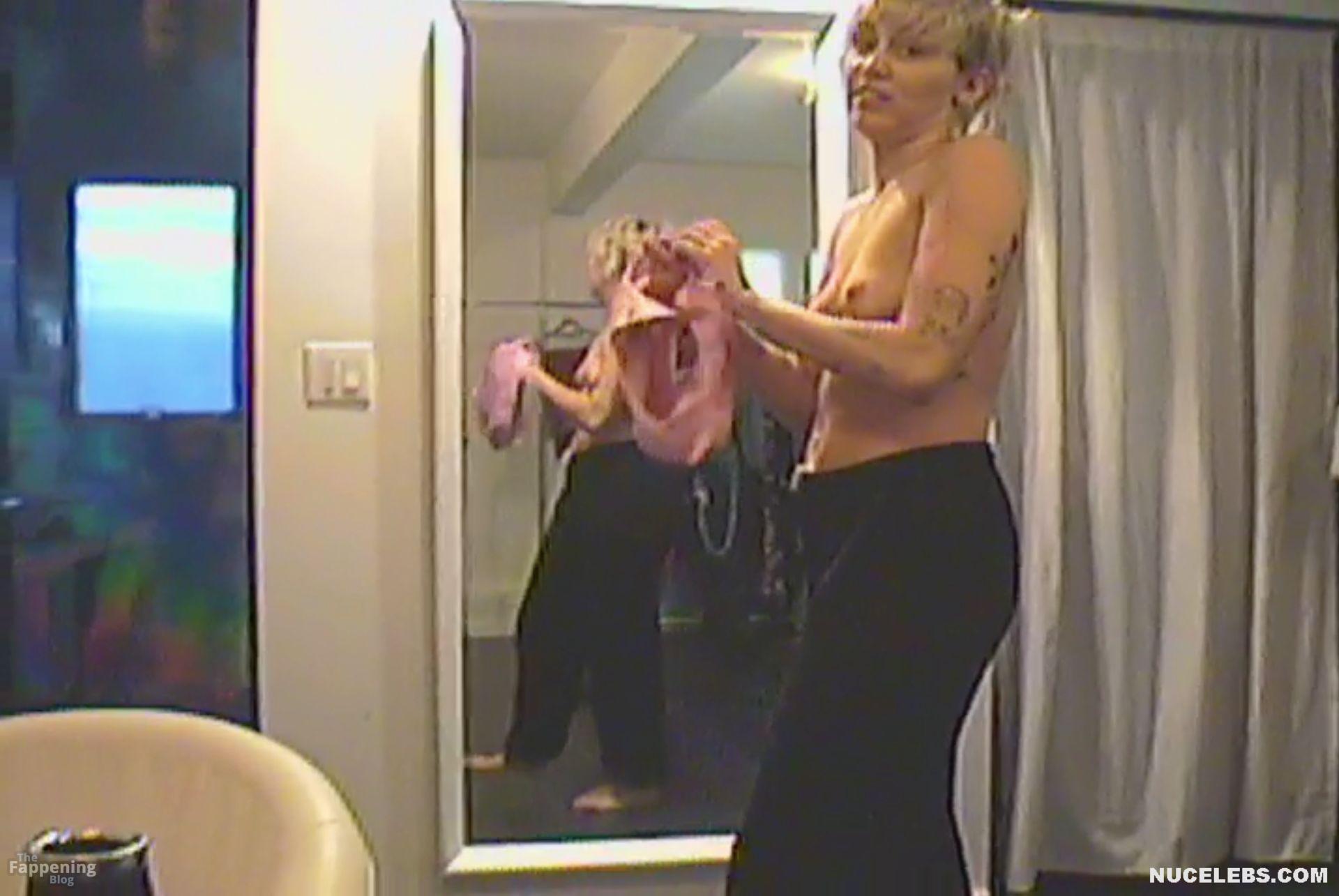 Don’t miss the leaked videos of exposed Miley Cyrus! While she is choosing outfits with her team in the video, we can be captivated by Miley Cyrus’s naked boobs. Her pink protruding nipples are simply a sight to behold. This cutie is wearing only a black thong that accentuates Miley’s firm booty.
