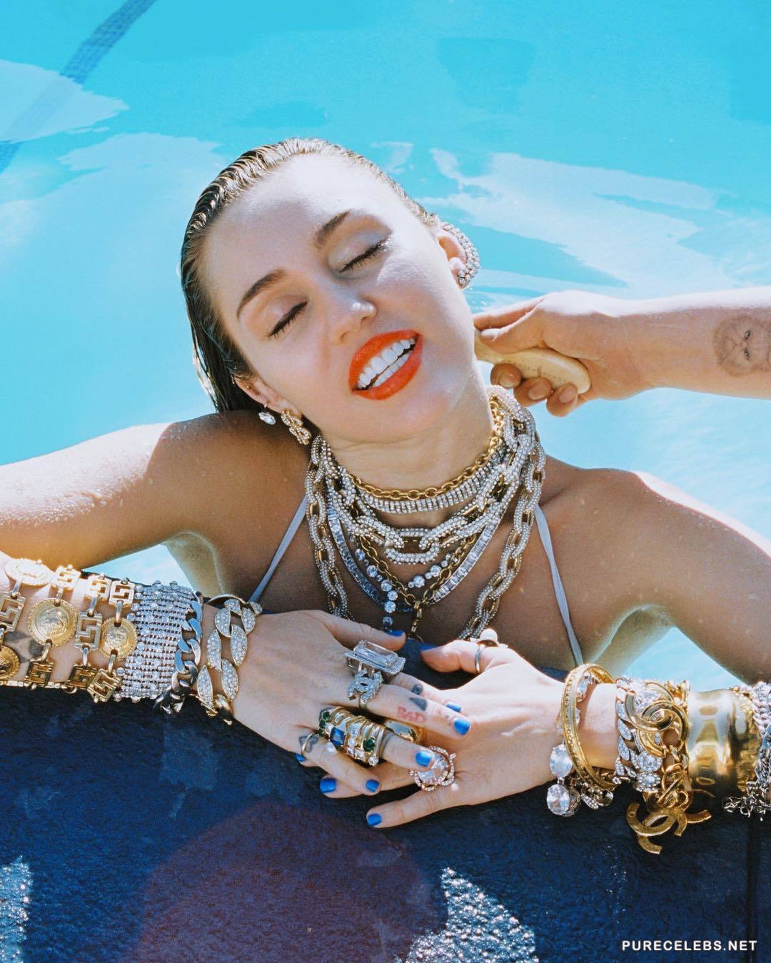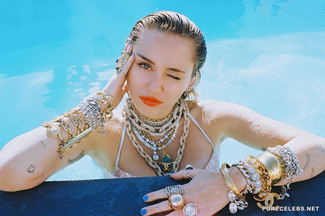 Miley Cyrus decided to stir up interest in her persona and exhibited completely nude pictures on her Instagram profile. The singer is cute smiling and posing on a lounger. Hot blonde lies completely naked wearing only a hat on her head and showing off her beautiful tattooed body and trying to cover her gorgeous boobs with protruding nipples with her hand. These private shots are going to spark your imagination!