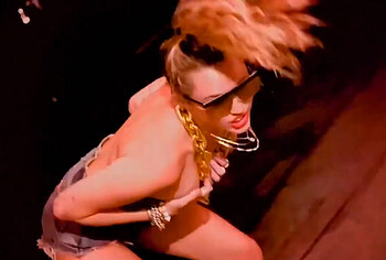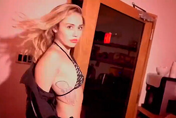 Sweet babe Miley Cyrus pampered everyone with her nude boobies during Ellen von Unwerth photoshoot. Not only her hot photos, but also provocative videos got into the network. The singer seductively shook her awesome ass in denim shorts, as well as her tits in a petite bra. Also, the celeb was shot topless without hesitation. Miley Cyrus was squeezing her nude breasts with her palms, then covering them with a big golden chain … Well, this star’s fantasy works as it should, doesn’t it?