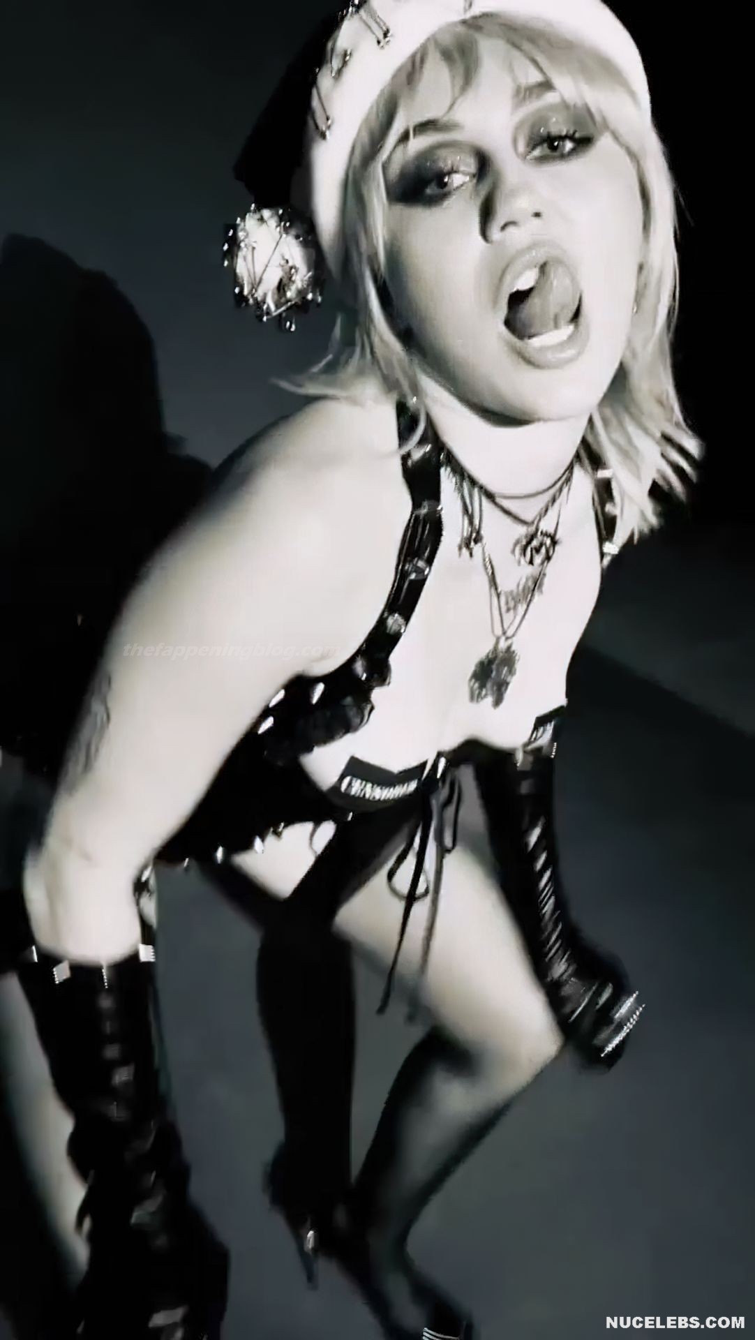 Miley Cyrus has prepared a great gift for her fans. This American singer starred in a great Christmas photoshoot! Moreover, Miley Cyrus certainly made her photos very spicy. The girl was photographed in a Santa costume, dressed on a naked body. Moreover, she certainly did not button the top of her suit. Miley Cyrus teased the audience by covering her nude tits with her hands. And this hot blonde was photographed in a black leather bodysuit, stockings and a whip in her hand! Wow, this celebrity seems to have decided to do a real BDSM show for her fans! At the same time, Miley Cyrus titties were completely naked! Although she still had to cover her nipples with stickers!