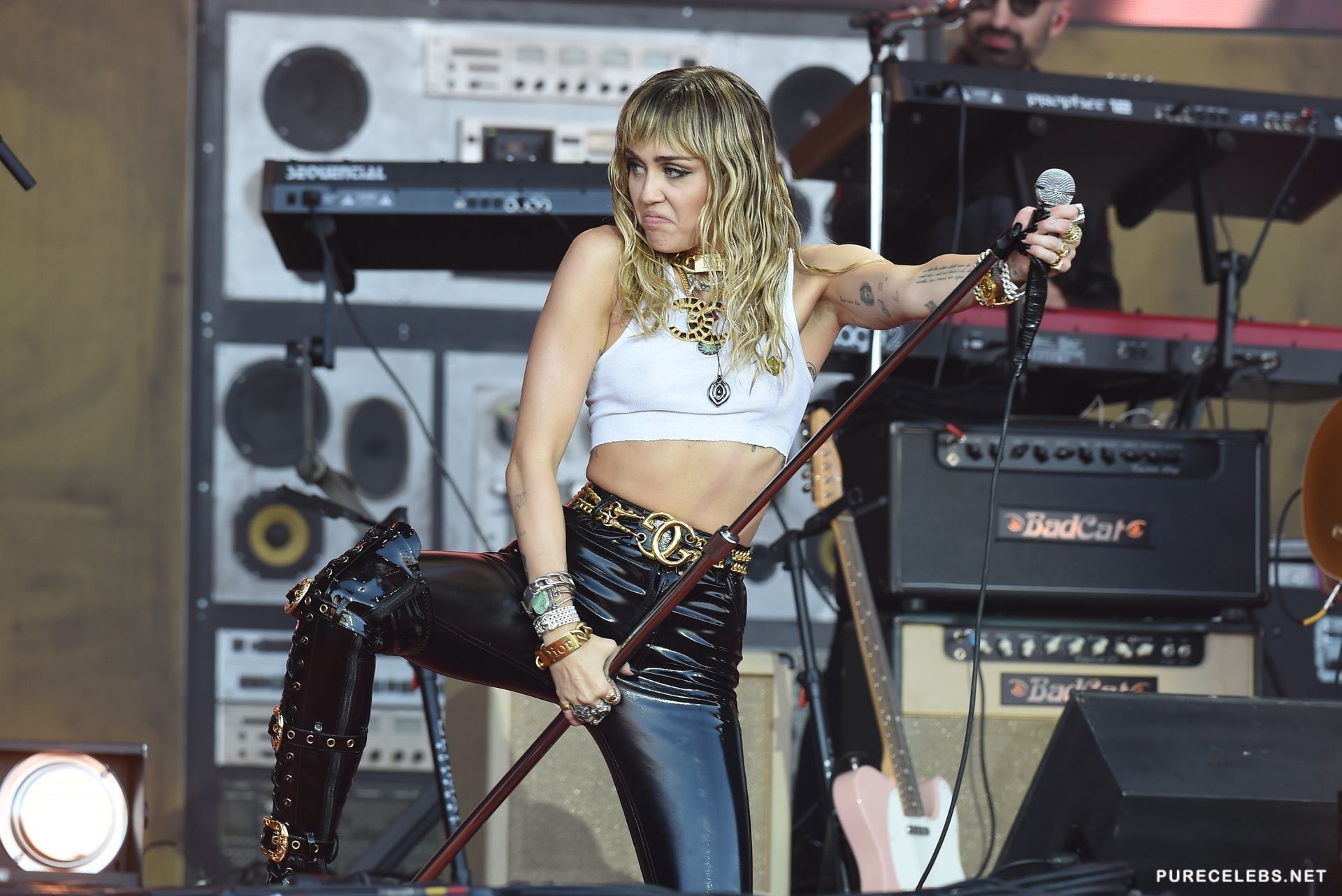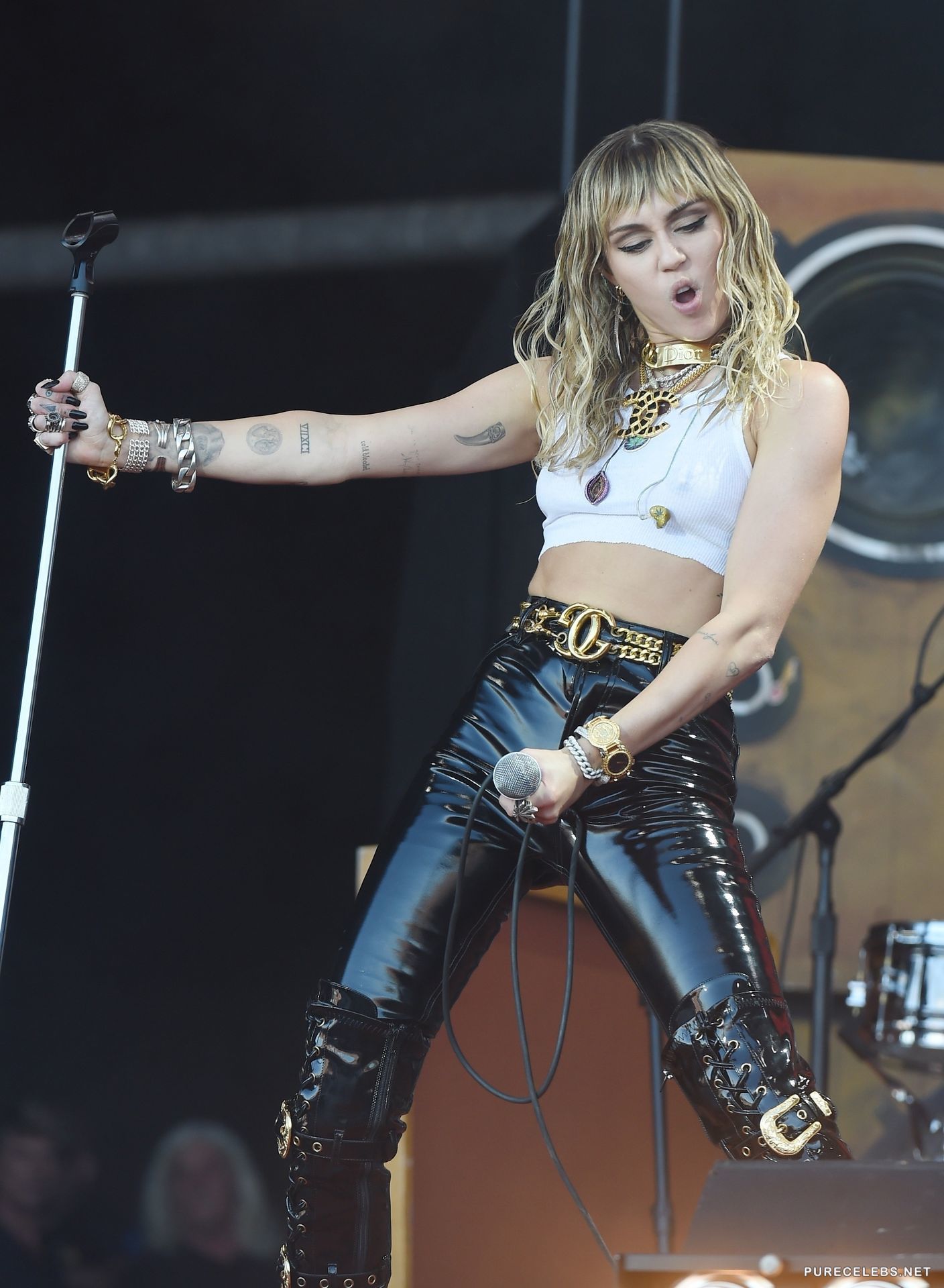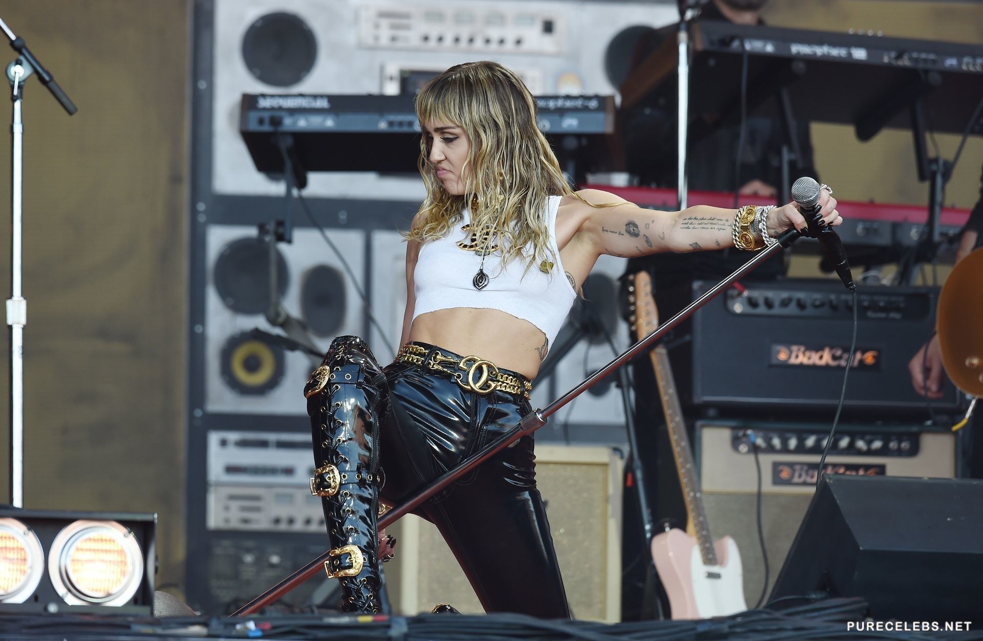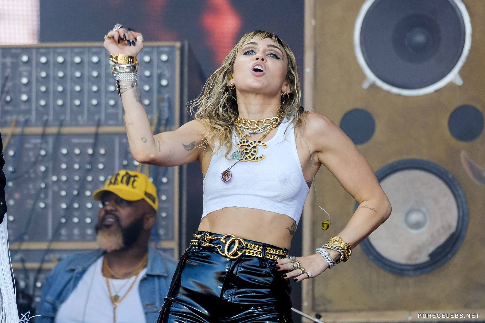 The charming singer Miley Cyrus just transforms in an incredible way when she steps on stage. The girl loves to wear seductive outfits, and when she starts singing, she looks incredibly sexy. For example, recently a star was photographed in black latex pants and a short white top. It was simply impossible to resist her wonderful breasts with poking nipples, which was clearly visible through her tight top.