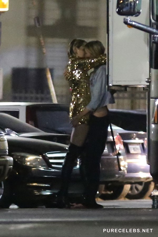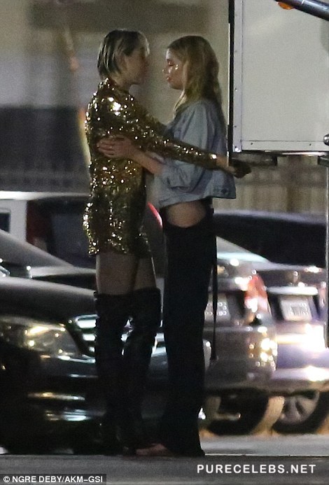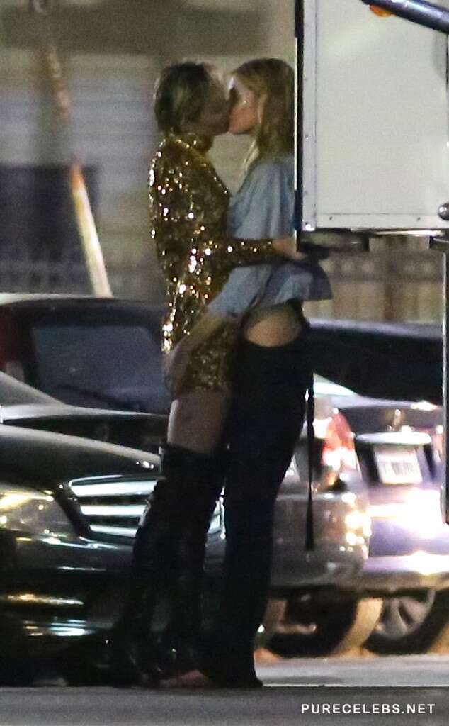 Miley Cyrus and Stella Maxwell were caught by paparazzi. This sweet couple caught during their lesbian fun on the street. At first, the girls passionately embraced and kissed, hiding behind a big car. But then their excitement moved to a new level and the beauties decided to fondle each other’s pussies with their fingers. How sexy and seductive it looked, it is simply impossible to resist such a spectacle.