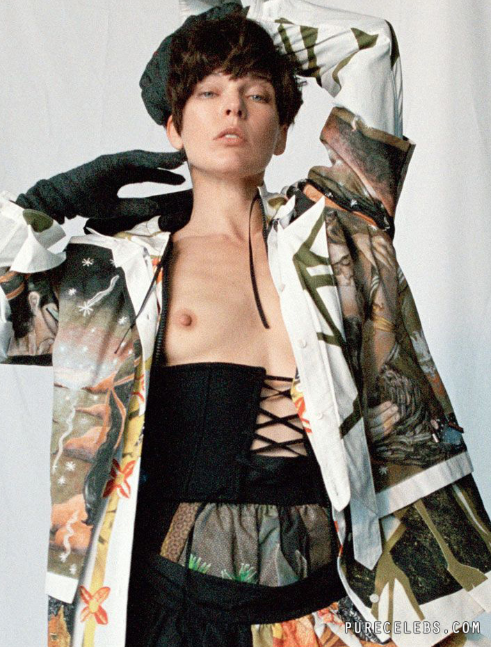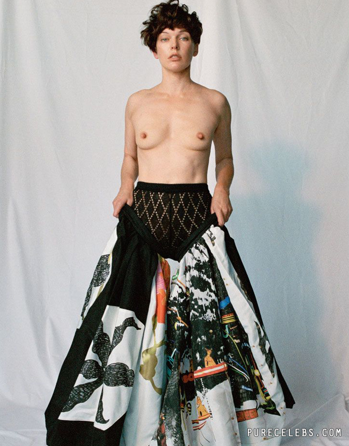Mila Jovovich is known from the movie series “Resident Evil” is also working as a model and she was invited to take a series of nude pictures. She accepted it and showed the world she still looks amazing and that she is still a desirable woman. In these pictures we prepared for you can enjoy in her lovely small breasts and athletic figure.