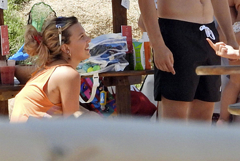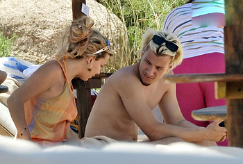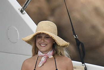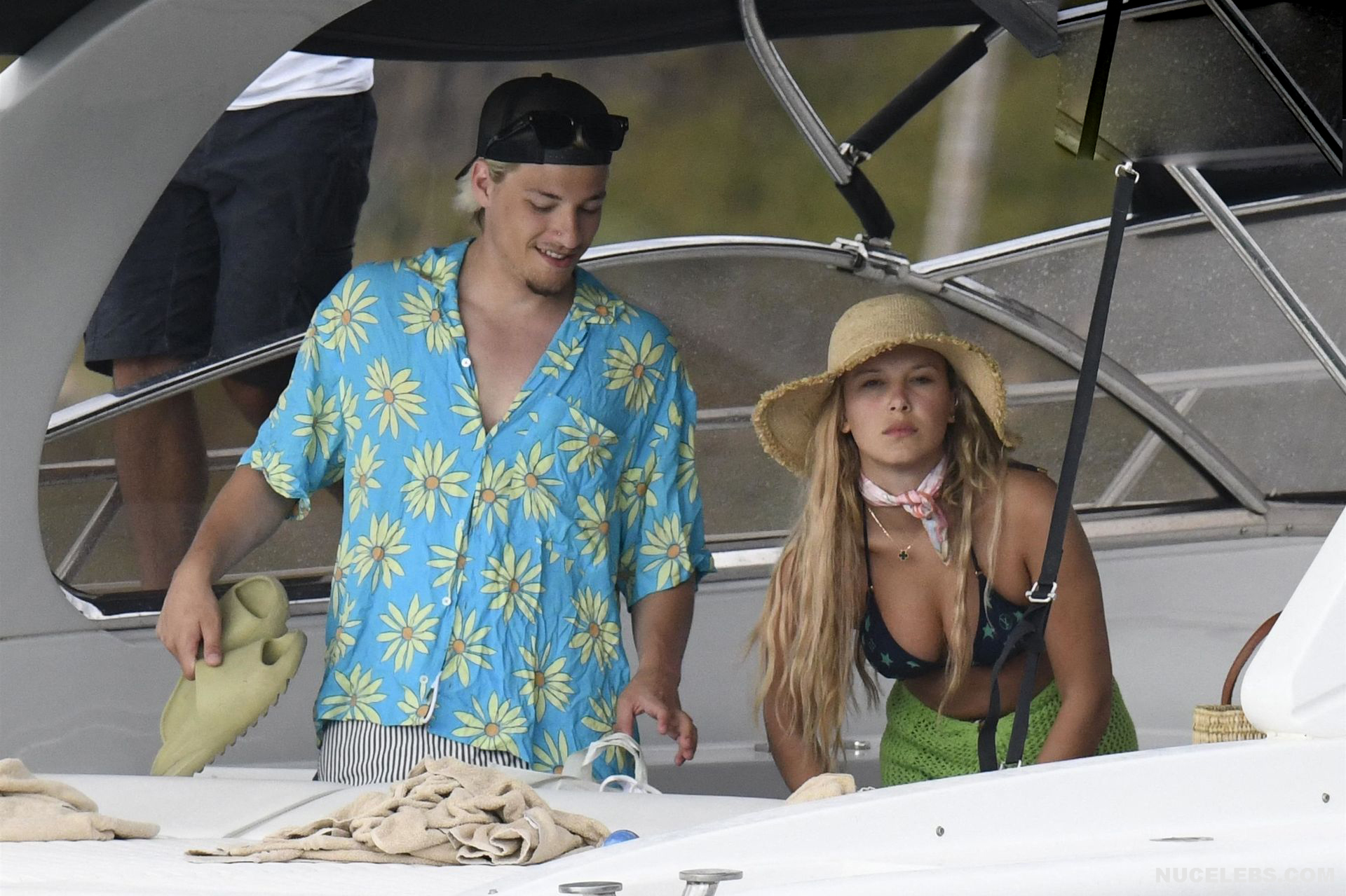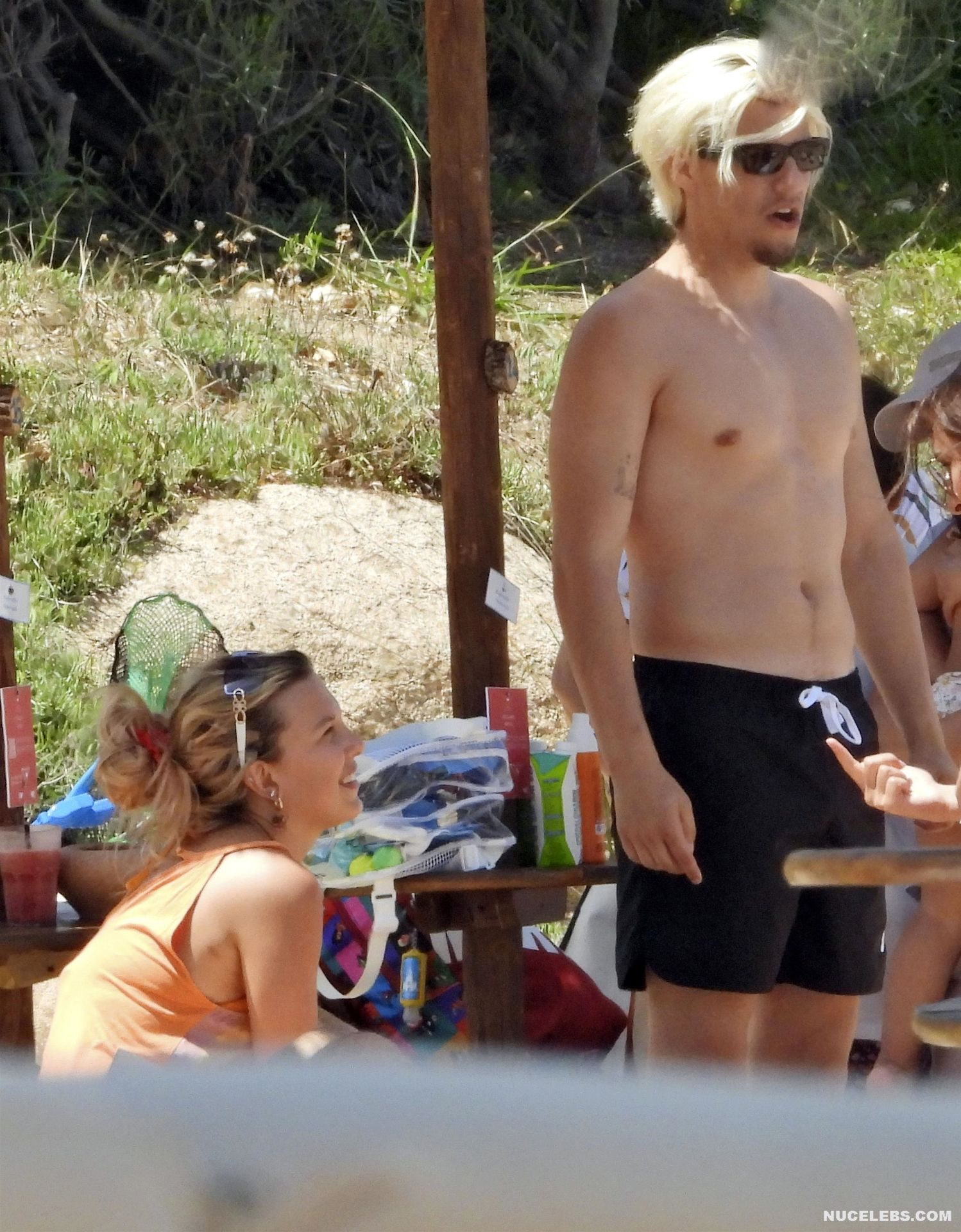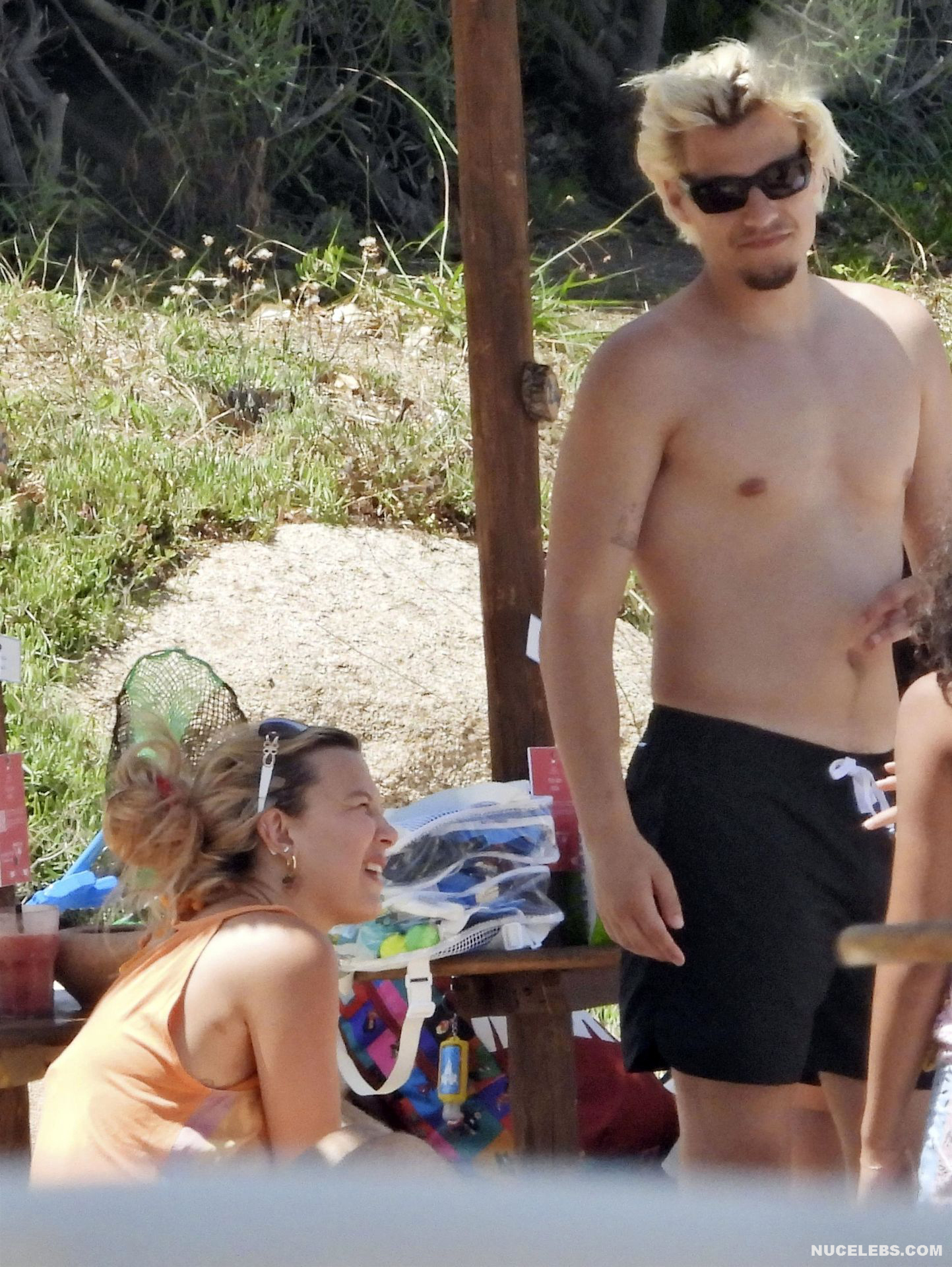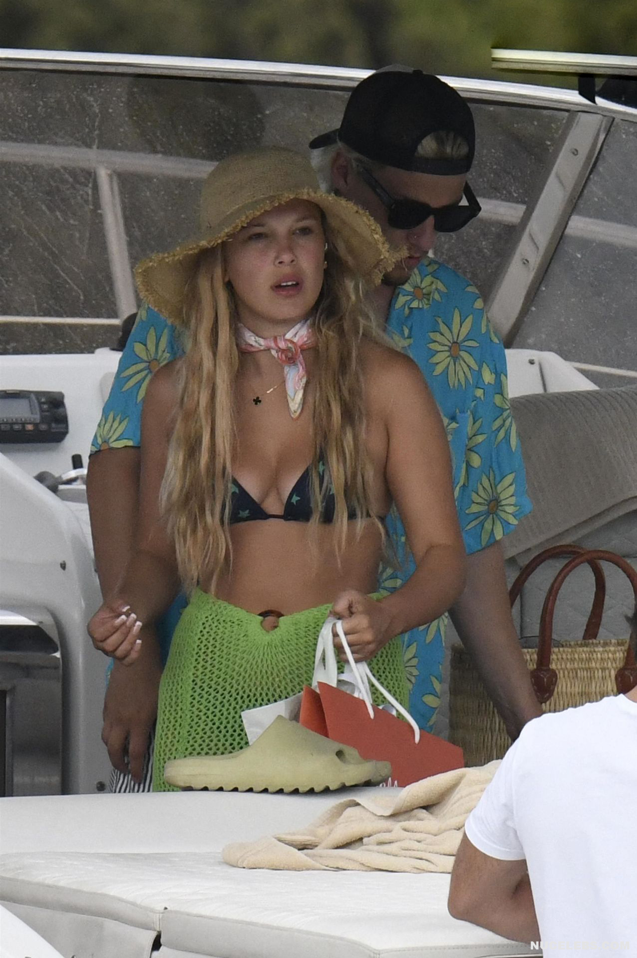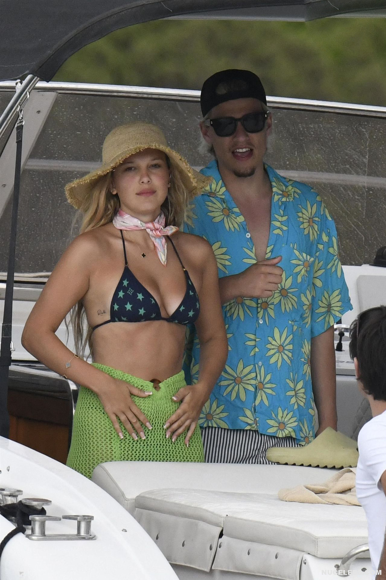 Millie Bobby’s keen sense of style and fashion further enhances her appeal. And this British model looked especially seductive in a blue bikini with a star print. Agree, Millie Bobby’s tits looked very sexy in these two pieces of fabric. And of course, you can’t ignore the photos of her in an orange bikini. Her booty in a tight thong seemed almost naked, especially when you look at this beauty in profile!