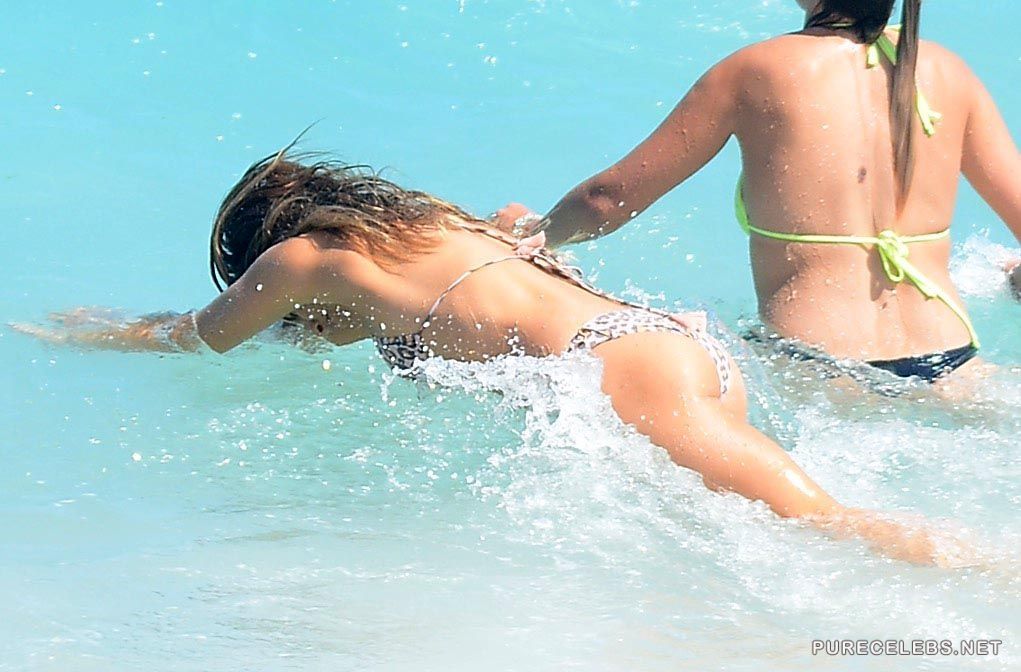 Mimi Elashiry only recently gained her celebrity status as a model, and now we eagerly await every opportunity to see her beautiful body. The young brunette was spotted by paparazzi enjoying a day at the beach with her friends in a miniature leopard print bikini. Seeing her barely clothed wet body, with her swimsuit clinging on to her every curve will instantly make you a fan of Mimi.