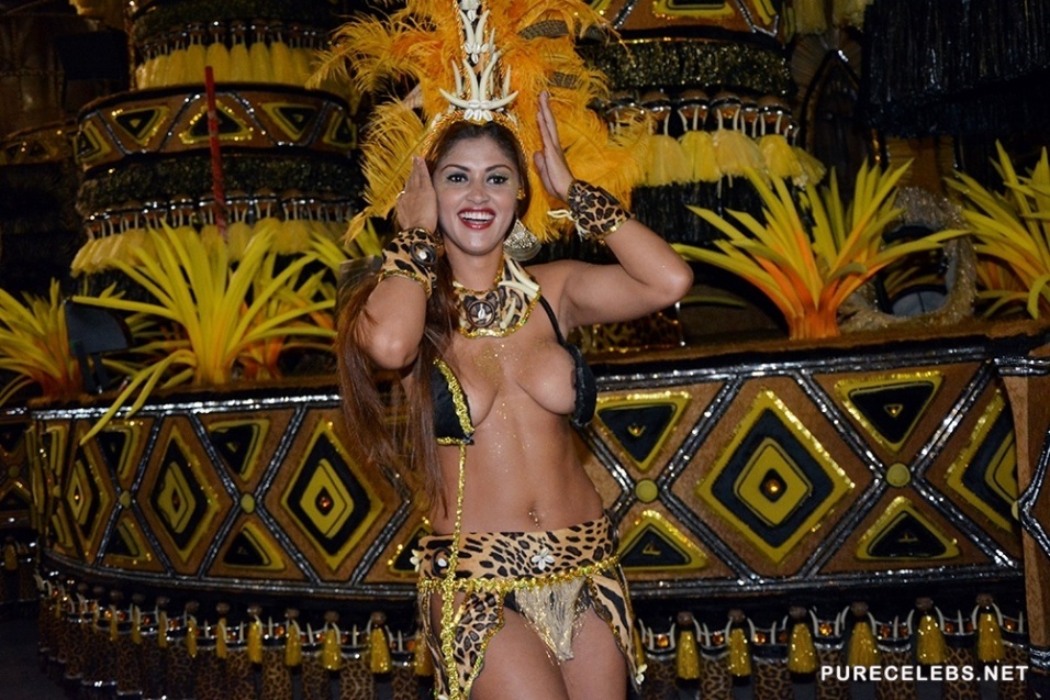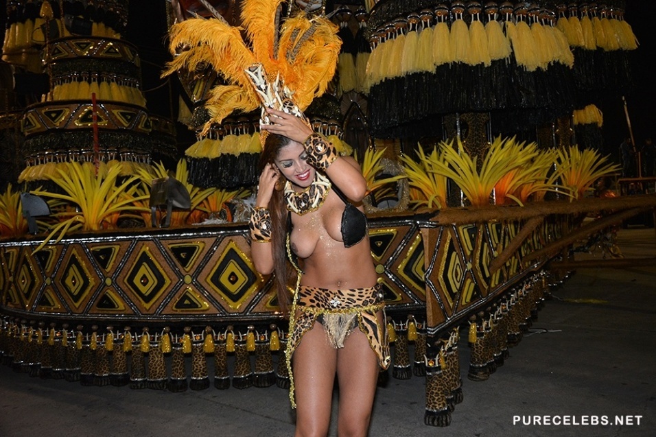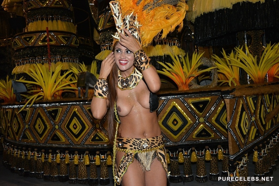 Miss Bumbum Brasil Rosie Oliveira attended this year’s Carnival in Rio and participated in the luxurious parade. After the formal part was over Rosie was eager to take off her heavy headdress and tight bra and panties that she failed to notice the paparazzi photographing her every move. After she realized that she had exposed her breasts to the camera she tried covering them with her palms, but it was already too late.