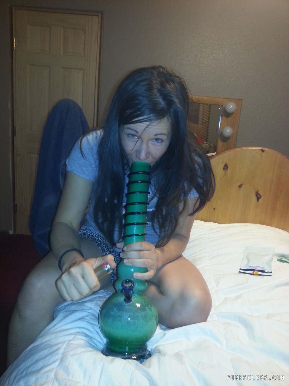 Angela Magana, MMA fighter is fighting her way to beat big green dildo shaped hookah. She probably practices some of her MMA training out in the forest and also while being naked coz you can see her sexy body covered in some dirt. That’s totally from wrestling naked out in the open woods. Besides that she is showing her abs and naked tight ass. If you are fan of MMA girls, this is probably a right choice for you.