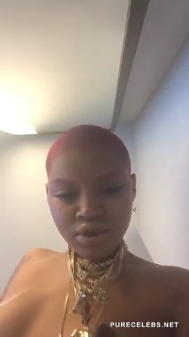 American fashion model Slick Woods decided to keep up with other celebrities and make her provocative selfie on which she posed topless. The girl was lying on a big black leather couch, looking at the camera and occasionally transferring the camera to her wonderful tits with brown nipples. This celebrity certainly knows how to interest her subscribers and keep them interested.