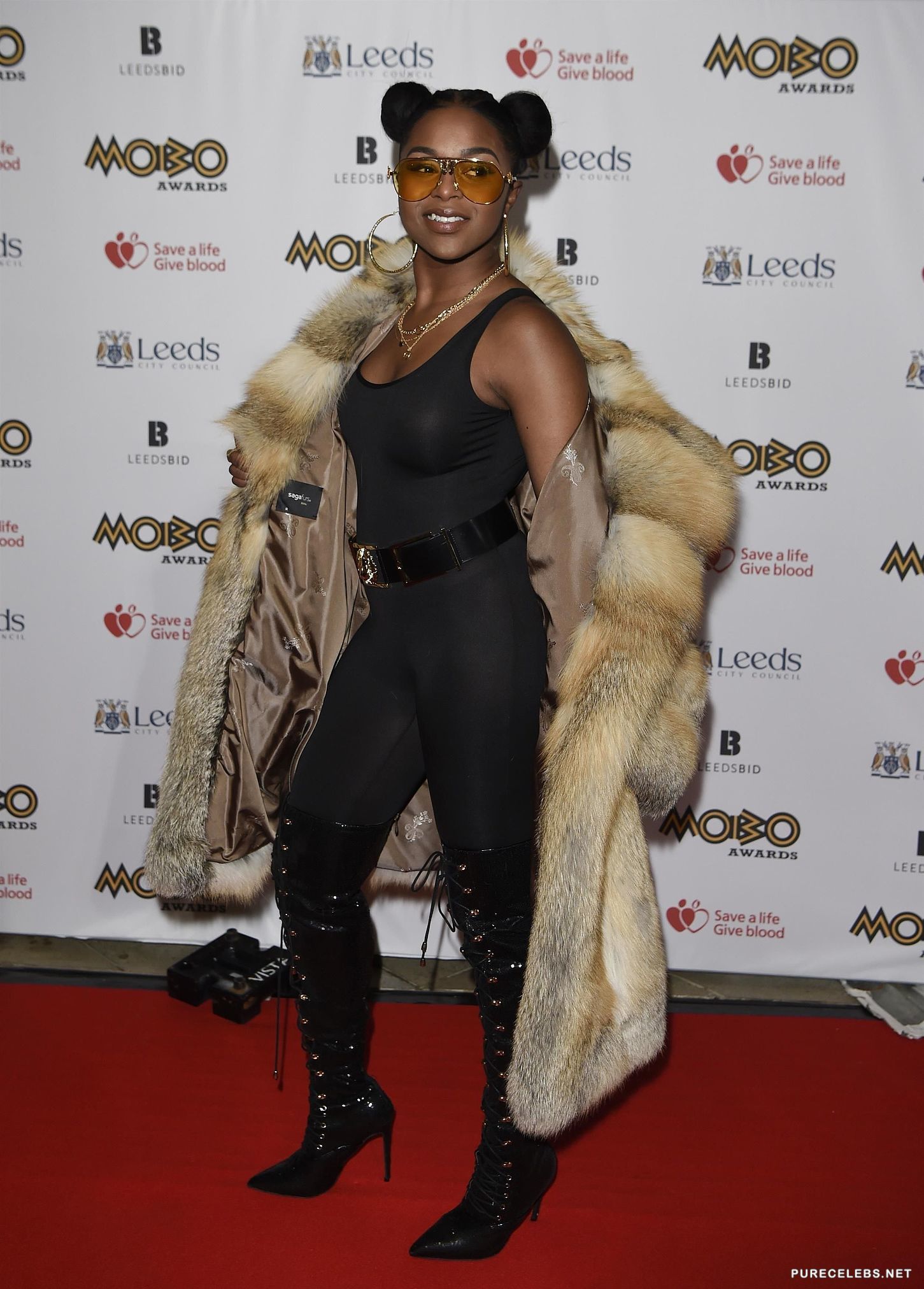 Beautiful ebony babe Nadia Rose recently attended the Mobo awards wearing a sheer black jumpsuit. She showed up to the event in a chunky fur coat but quickly took it off to reveal her perky nipples and massive tits. Just looking at her plump boobs is enough to make your mouth water. Her plump ass also looked amazing in the tight jumpsuit.
