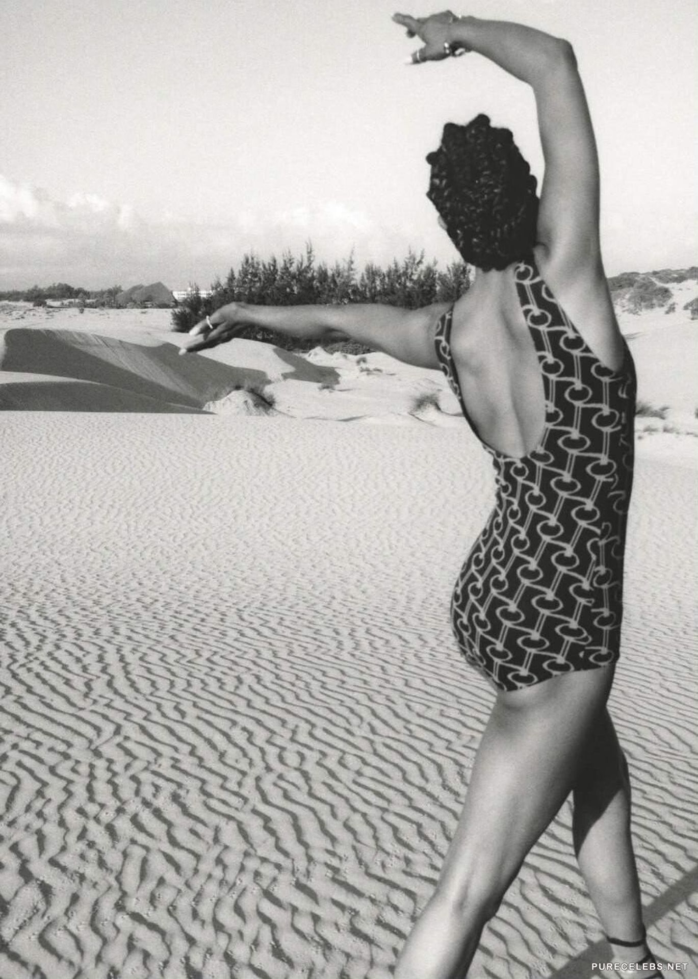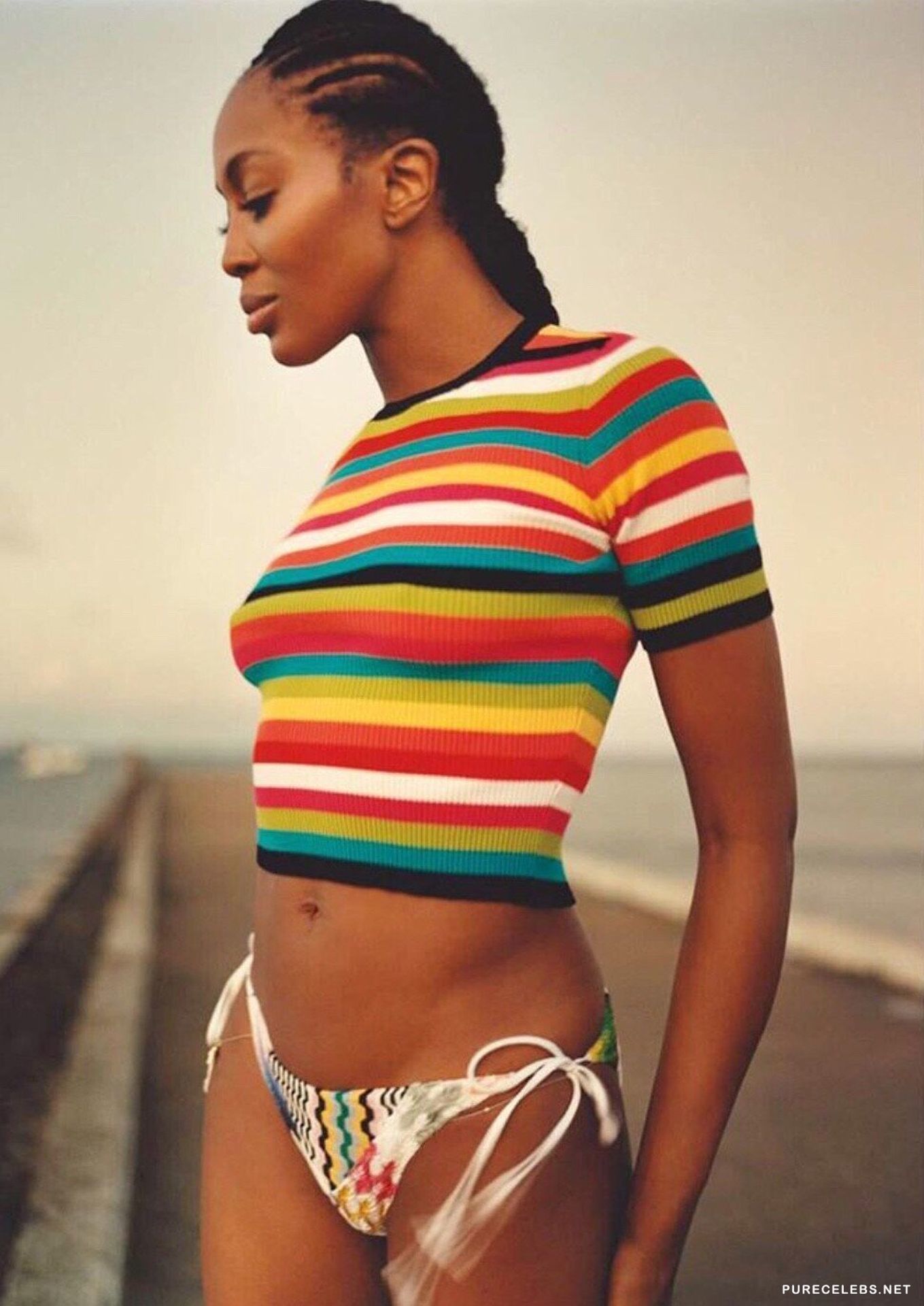 British supermodel and actress Naomi Campbell will appear in the issue of Vogue UK (July 2019). This hot beauty will delight us with her candid shots, posing in sexy lingerie, as well as topless. It is simply impossible to look away from her gorgeous body when she is posing on the sand in a long golden mesh skirt, exposing her wonderful boobs with small hard nipples. This star is insanely sexy and seductive!