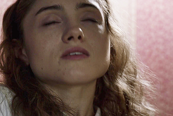 Here’s another hot scene in I Believe in Unicorns (2014). Natalia Dyer ended up in the hayloft with a man. They kissed passionately and undressed each other. The man began to lick Natalia Dyer’s nude sweet pussy, and then began to fuck her hard in doggy style…