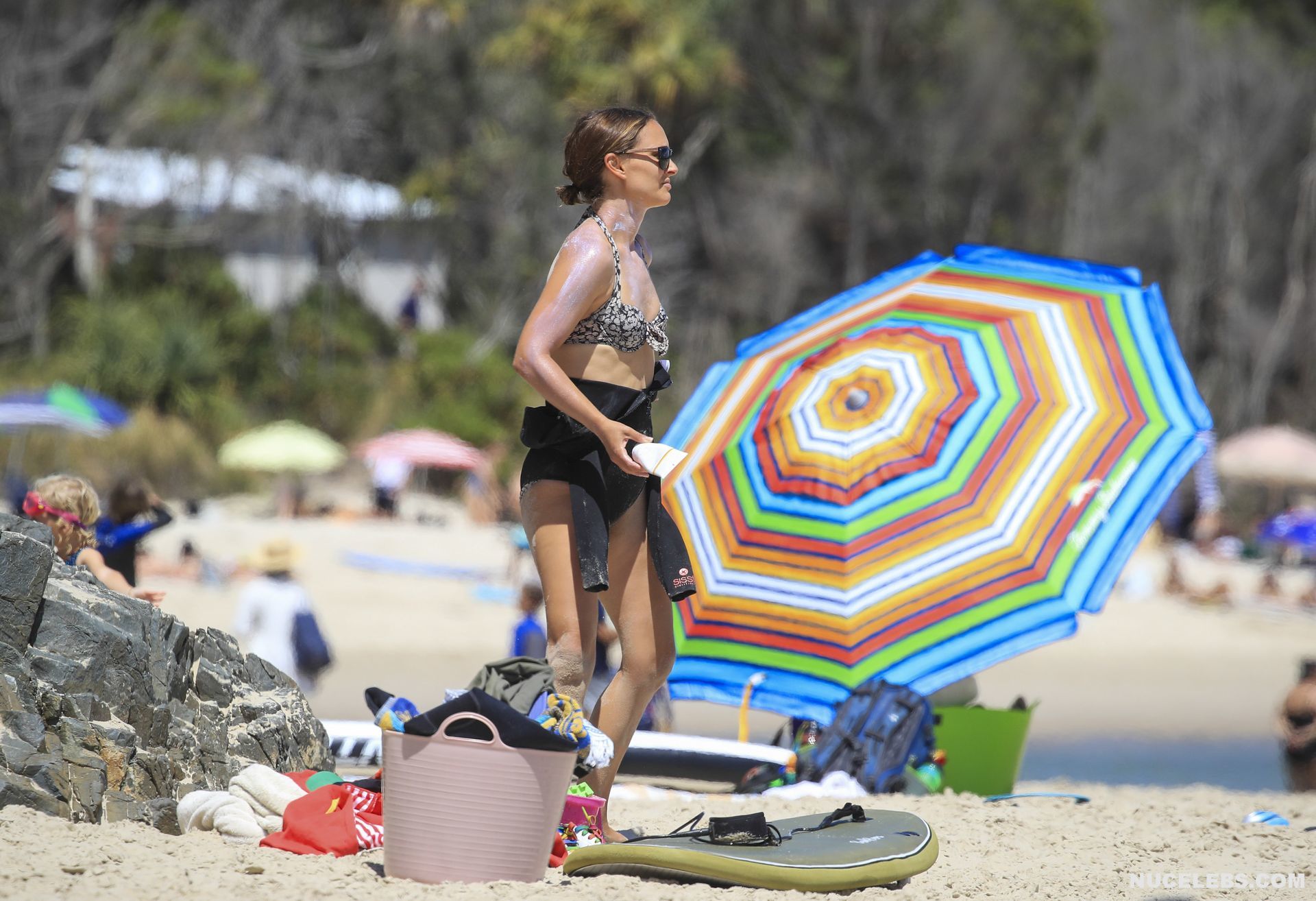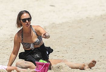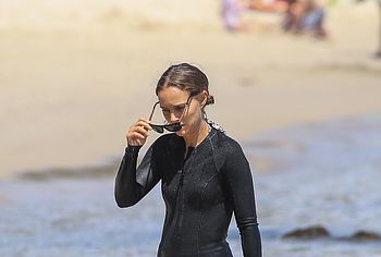 It’s almost impossible to take Natalie Portman nude pictures, but paparazzi never stop trying to do it. For example, they hoped that they would be able to photograph some naked moments with this star, when she was relaxing on the beach. At that time, Natalie Portman was wearing a black bathing suit, which she later removed. The wet bottom of the suit perfectly accentuated her chic cameltoe. But still, her titties and booty remained covered, because then the star sunbathed in a bikini. Well, maybe next time Natalie Portman will be more daring and will delight us with her nude photos.