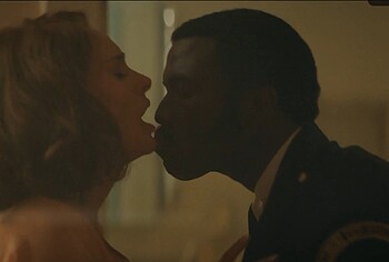 Check out how Natalie Portman fucked hard in Lady in the Lake. To start with, this charming actress excited the man with her passionate kisses. She even let him get under her skirt and finger her pussy. The couple was very excited and made love without even undressing. The black man fucked Natalie Portman doggy style on the bed, making her scream loudly with pleasure. Oh, these two definitely know how to get each other going fast!