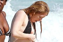 Natasha Lyonne is one unique and lovely American actress. She has never been in the center of media attention for some scandals or so. But she might get now, as paparazzi caught her flashing those boobs of hers at the sea! We have those pictures within a picture gallery! They are waiting for you to pay them a visit as well as her sweet tits with cute hard brow nipples!