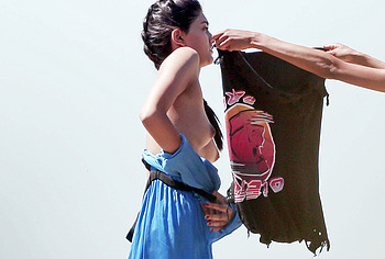 Neelam Gill loves to tease everyone with her nude petite tits. This 28-year-old model made a splash at one of the events. There she appeared in a long beige transparent dress and with a small white handbag in her hands. The sheer fabric accentuated Neelam Gill’s nude breasts. Also, the paparazzi photographed this topless star when she changed clothes on the beach during a break between photo shoots.