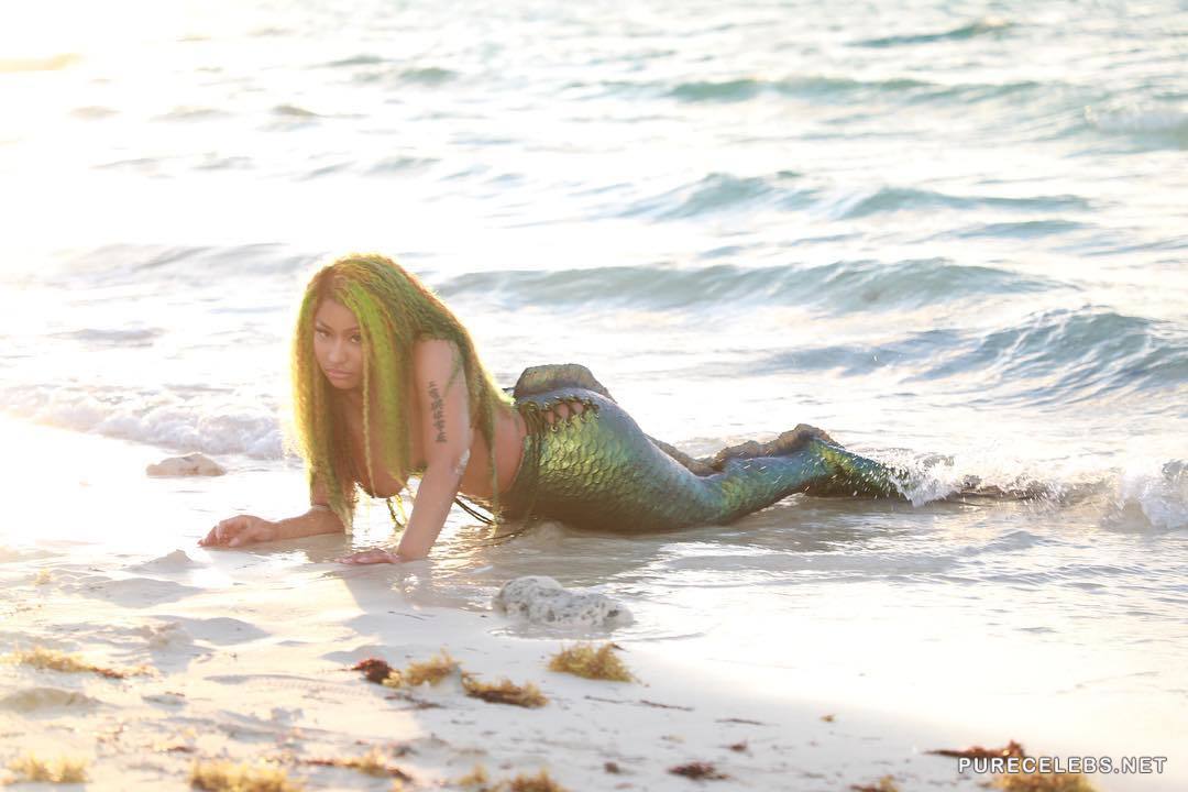 Voluptuous American rapper known for her amazing voice as much for her big boobs and gigantic ass, Nicki Minaj wanted to be a mermaid for one of her photo shootings, so to keep it as realistic as possible she also wanted to do it topless. What a mermaid she would be, now that we see her photos, enchanted sailors getting stuck on islands would not be a myth at all.